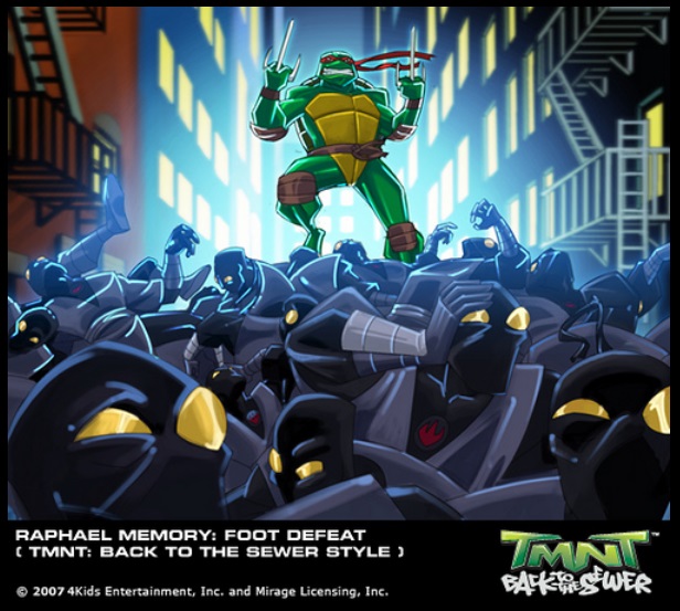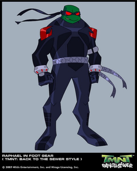 Dans Turtles Forever, Raphael voit d’un très mauvais œil les tortues du dessin-animé de 1987 : il trouve que ce sont des clowns. Parallèlement, quand il rencontre les tortues du comics original, il s’écrie « j’adore ces gars ! » même si les huit tortues se font massacrer par les quatre tortues en noir et blanc.