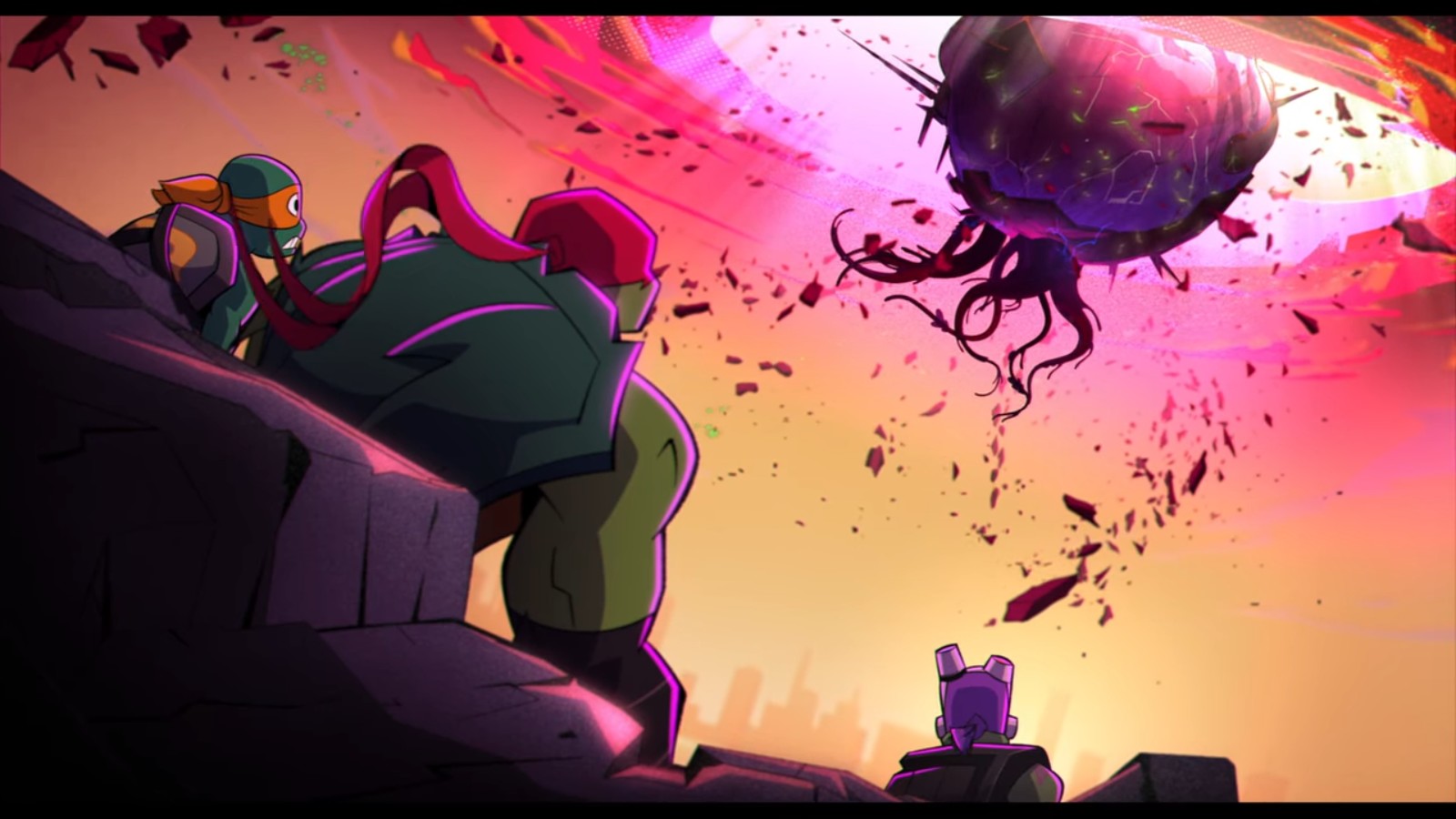 Le temps gagné par les extraterrestres leur permit d’ouvrir un portail gigantesque dans le ciel pour l’arrivée du Technodrome. Se séparant en trois équipes, les ninjas avaient l’intention de réparer leurs erreurs. Surtout Leonardo, qui se rendait compte que son immaturité et sa manie de vouloir toujours tout faire seul entravaient leurs opérations. Tandis que Donatello et Michelangelo essayaient d’arrêter le vaisseau, Leonardo attaqua directement Krang One pour retrouver Raphael. Mais la tortue, toujours obéissante à ses nouveaux maîtres était redoutable. Cependant, les pleurs de son frère lui permirent de recouvrer en partie son esprit et de reprendre le contrôle de son propre corps. Les tortues libérées purent combattre Krang One jusqu’à l’expulser du Technodrome, dans les airs.