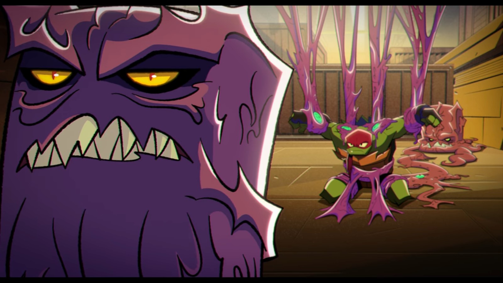 Initialement, il était prévu que Raphael perde son œil droit à l’issue du film Rise of the TMNT, après avoir été contaminé par krang, comme le suggère ce concept art de Bryce Collins.