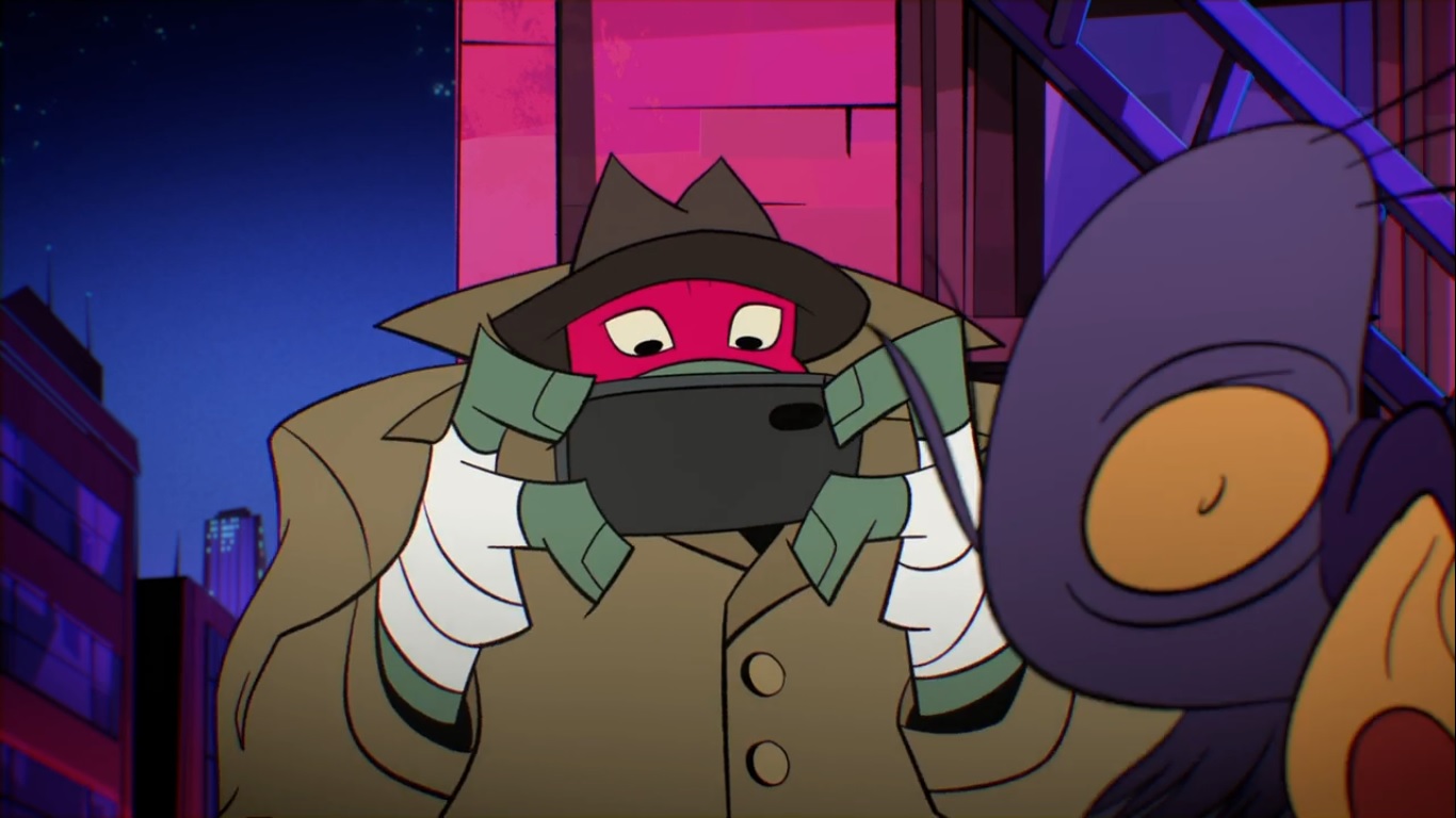 Chaque tortue est dessinée de manière à dissimuler une forme géométrique dans son design. Raphael est un rectangle (source).