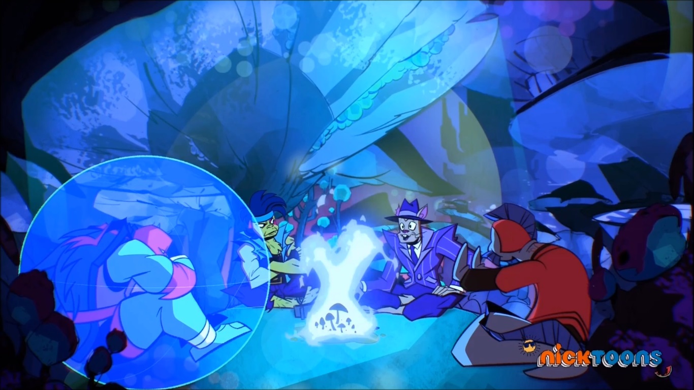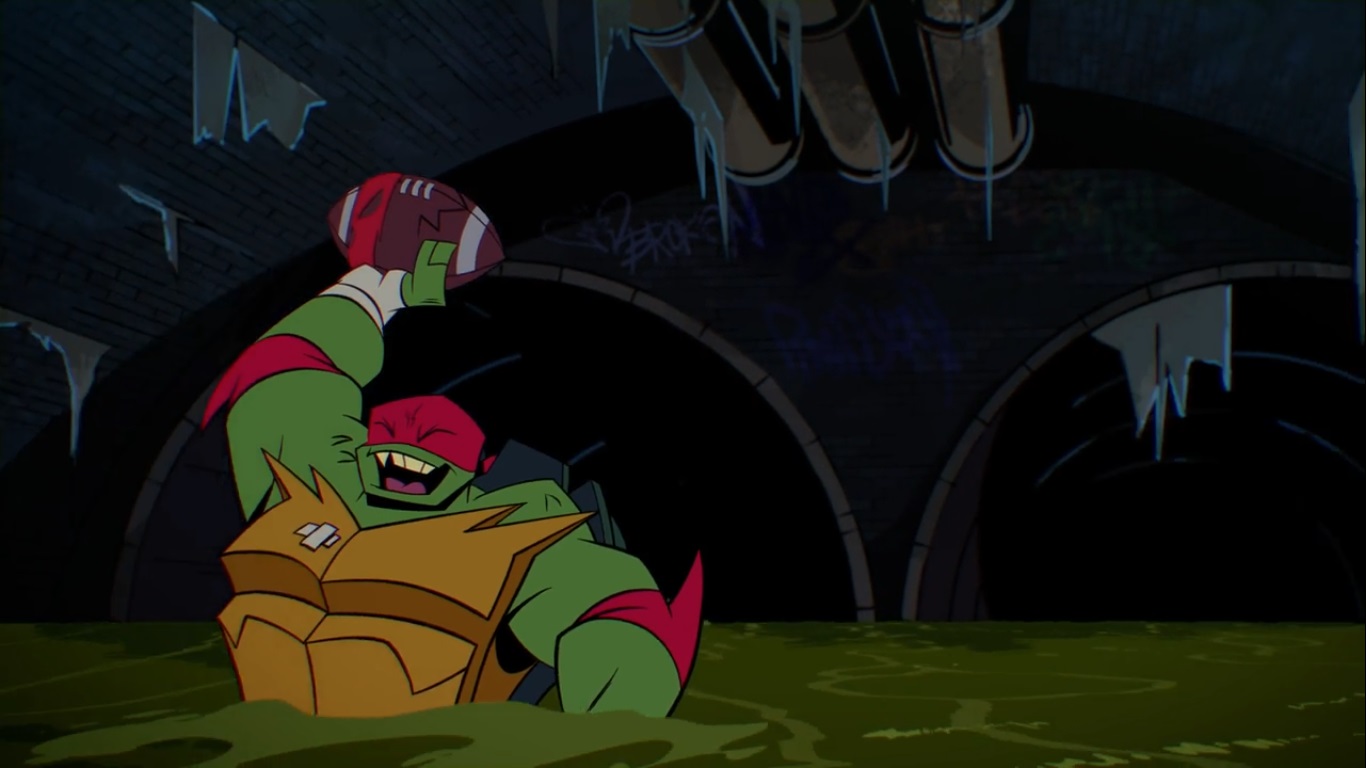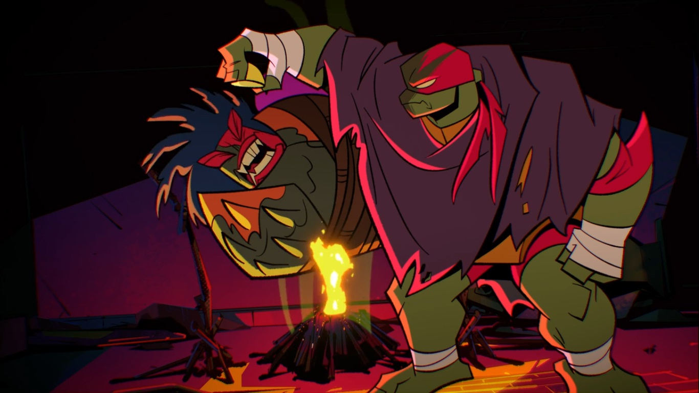Afin de se cacher, les tortues étaient parties pour le chenil de Todd. Le capybara avait profité de l’occasion pour leur forger de nouvelles armes. Karai, qui avait transféré son esprit dans le corps d’April. Mais l’enseignement pour vaincre Shredder était complexe. Raphael était particulièrement inquiet de ne pas réussir à libérer toute sa puissance mystique. Après une longue discussion avec Karai, il se jeta du haut d’un arbre pour forcer ses frères à libérer à leur tour leur force et le sauver. C’était un franc succès, les quatre frères avaient compris comment développer cette nouvelle capacité (Finale, part. 3 : Anatawa hitorijanai, S2 E23).
