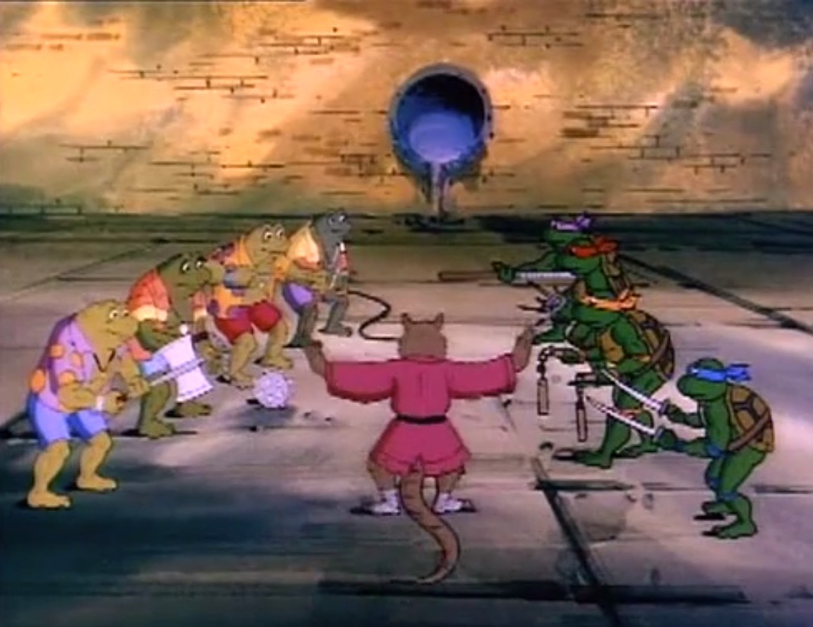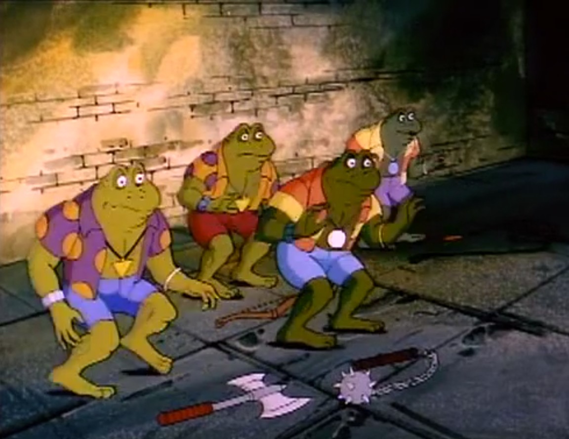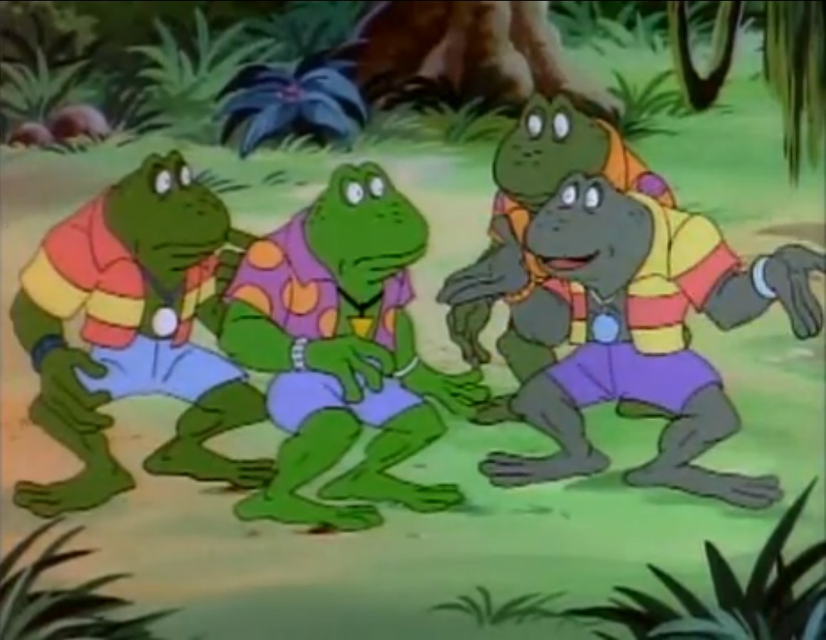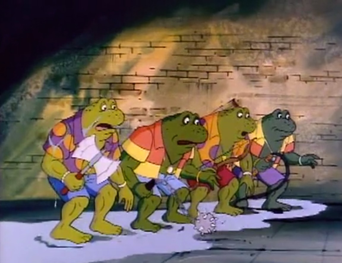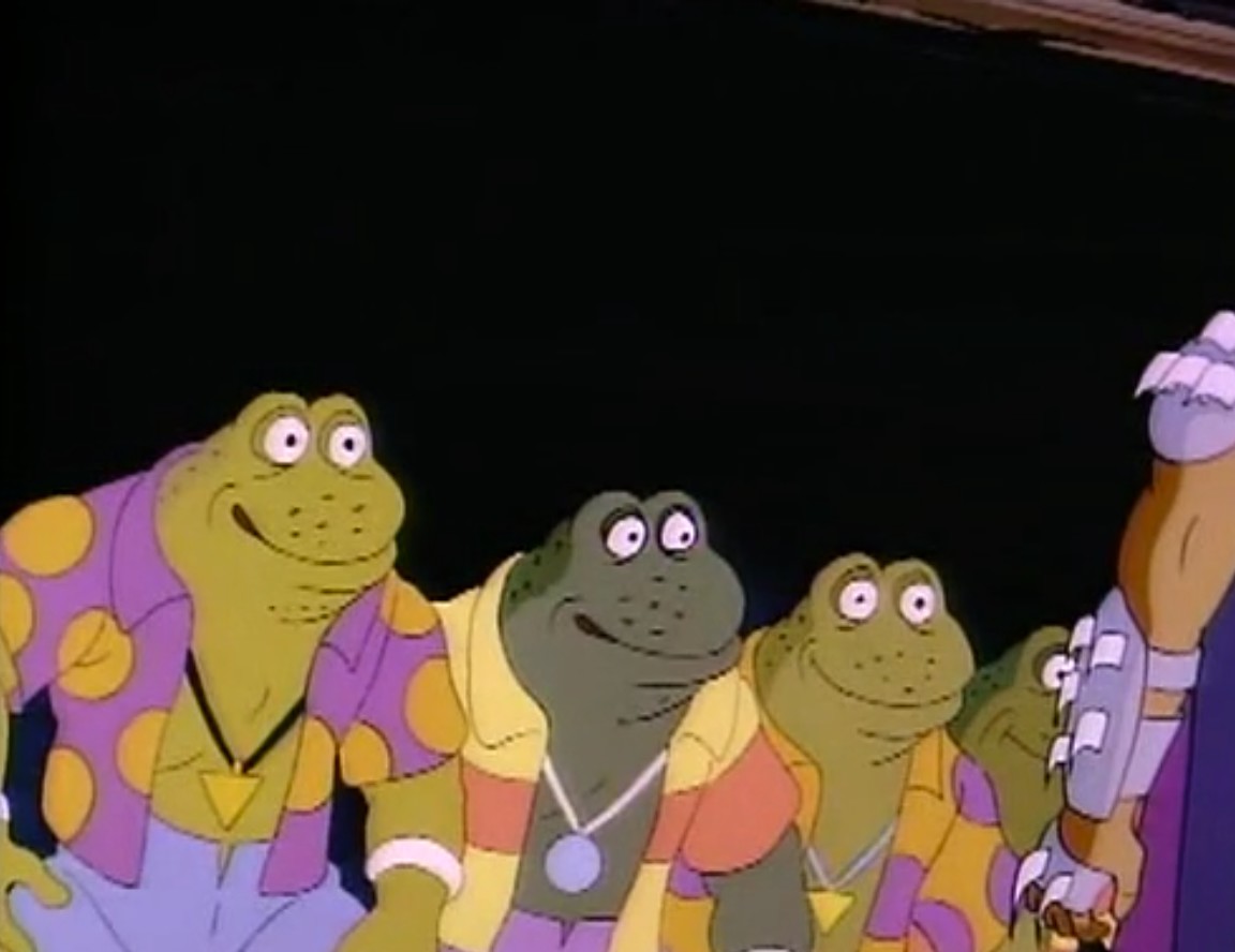 Shredder trouva les grenouilles et leur demanda de l’aider à combattre les tortues. Comme il semblait les respecter, les batraciens acceptaient de le suivre. À l’instar des tortues de Hamato Yoshi, il décidait de leur donner le nom de personnages historiques qu’il affectionnait particulièrement. Il lui donnait le nom de Rasputin the Mad Frog.Les quatre grenouilles commirent quelques vols. Les médias pensaient qu’il s’agissait d’actes venant des tortues et une brigade de lutte fut montée par le maire en réponse. Pour prouver leur innocence, les reptiles essayèrent de tirer cette affaire au clair. Lorsque le colonel Hoffman emprisonna les grenouilles dans de la glace, Leonardo insista auprès de ses frères pour les ramener au repaire, afin de leur prouver qu’elles n’étaient pas les méchantes de l’histoire. Recouvrant leurs esprits, les grenouilles furent surprises de voir que les tortues et leur maître Splinter n’avaient rien à voir avec la description de Shredder. Leur faisant confiance, elles tendirent un piège à leur ancien maître, permettant aux tortues d’essayer de l’arrêter, en vain. Les huit mutants repartirent dans les égouts grâce à une flèche explosive de Rasputin qui leur permettait de se défaire de leurs ennemis. Depuis les souterrains, les grenouilles regagnèrent leurs marais (L’invasion des grenouilles, S2 E8).
