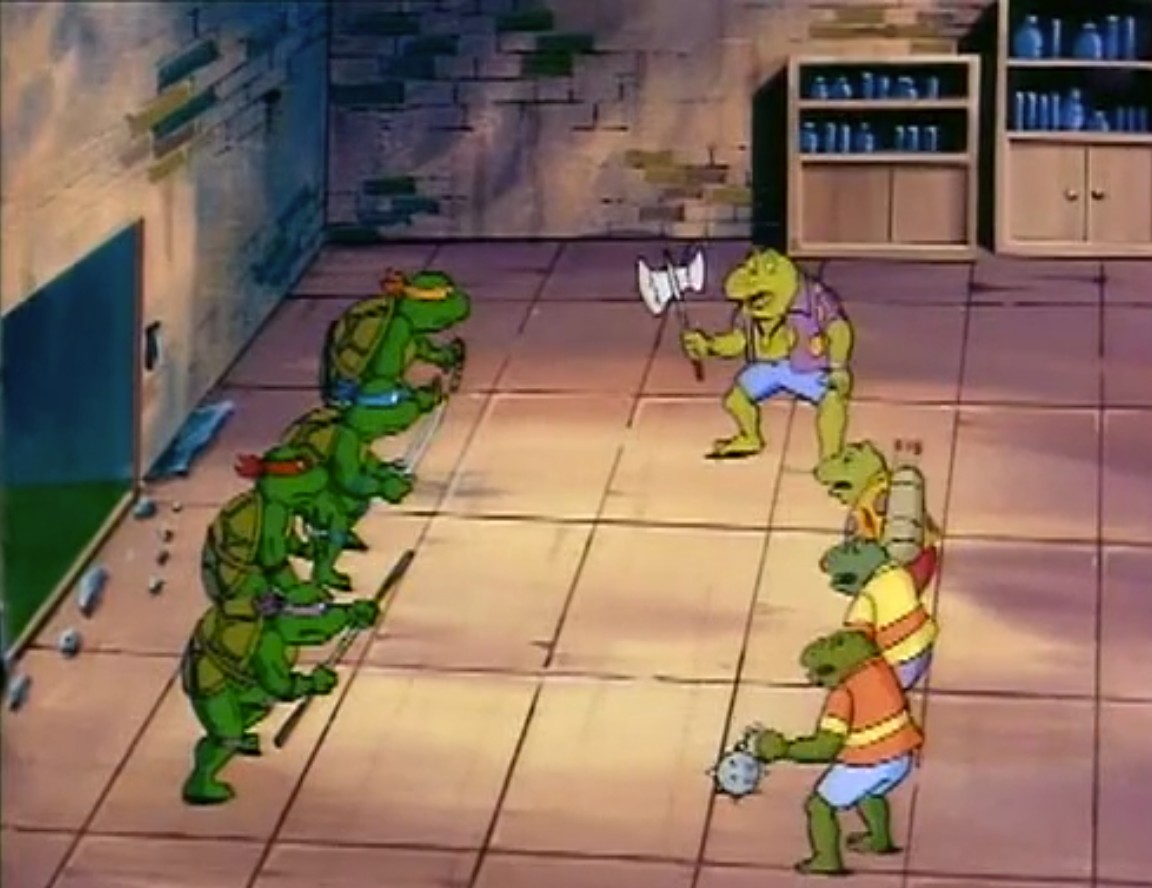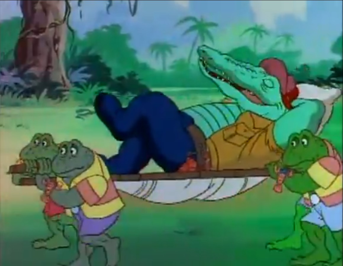 Lors de l’incident du mutagène dans les marais, les quatre grenouilles n’étaient pas les seules touchées. Ce fut également le cas d’un alligator géant, Leatherhead, qui devint un mutant humanoïde à son tour. Sa nouvelle condition le rendant puissant. Il profita de sa force pour contrôler les grenouilles et en faire ses esclaves. Les tortues partirent les sauver et découvrirent que Shredder voulait s’allier à l’alligator. Elles réussirent à les mettre en déroute avec l’aide des grenouilles mutantes (La terreur du marais, S3 E30).