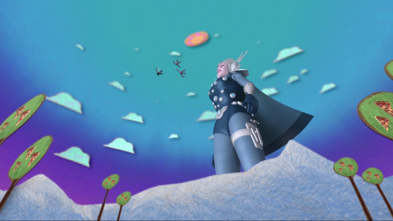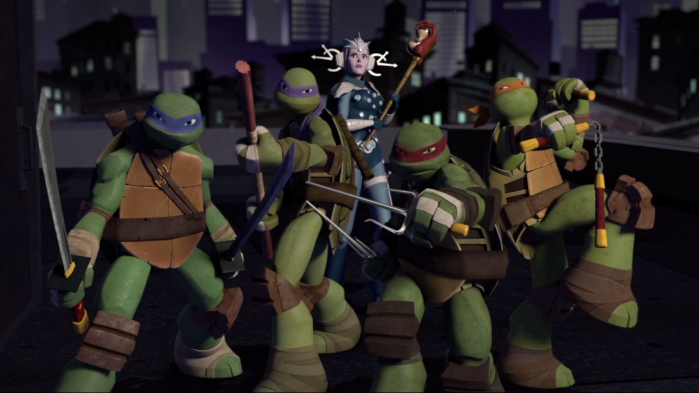 De nature aussi rebelle que maladroite, elle n’en demeurait pas moins déterminée. Un soir, elle surprit le démoniaque Savanti Romero, également Maître du temps, en train d’essayer de voler le Sceptre du temps afin de dominer l’espace temps. Elle s’empara à son tour du sceptre avant de remonter le temps jusqu’au XXIe siècle afin de rencontrer les Tortues Guerrières, de vraies légendes pour des actes que les Tortues Ninja n’avaient pas encore réalisés.