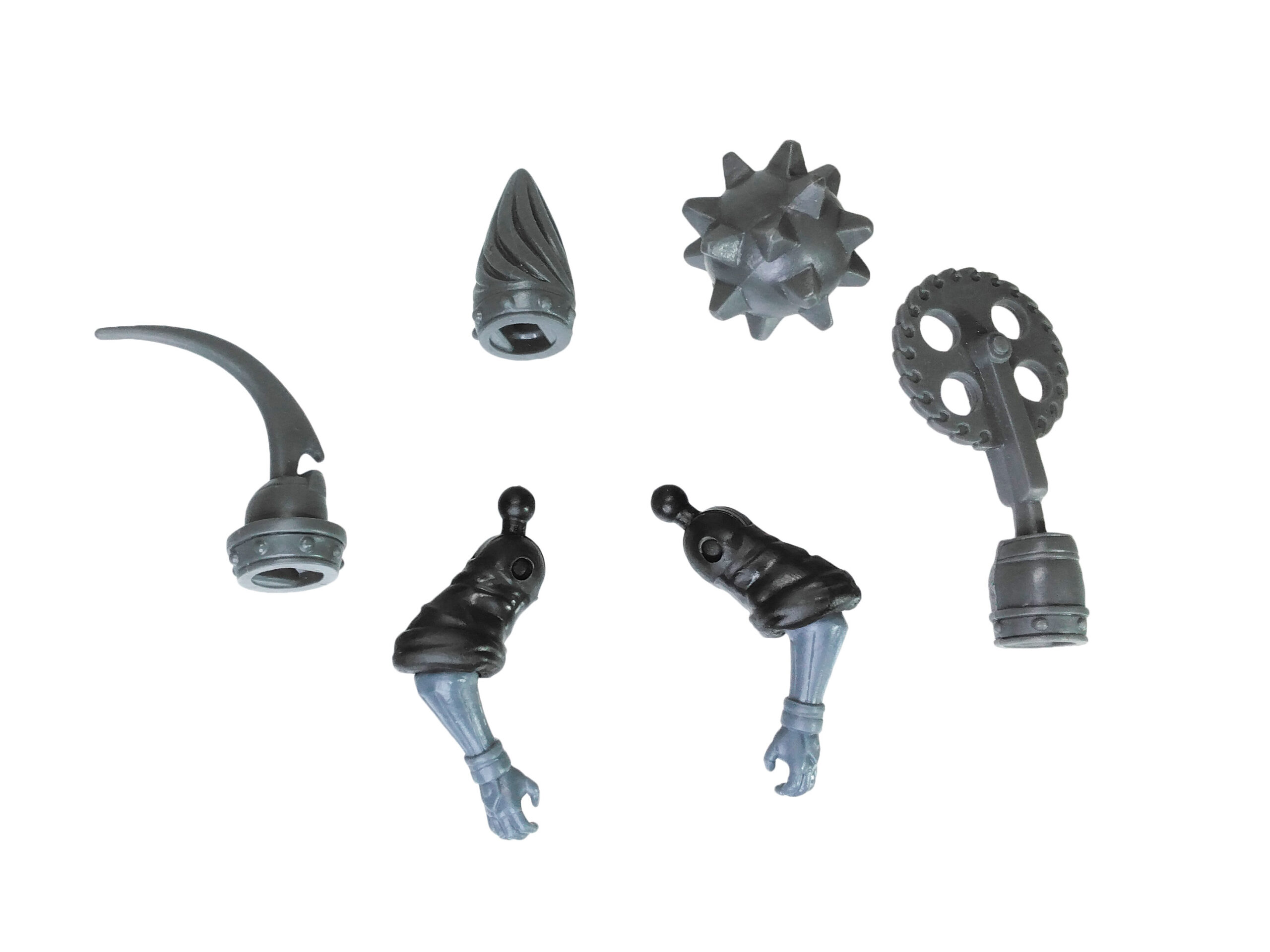 Notre Footbot possède quatre accessoires à placer au niveau de ses mains, sans distinction. Il s’agit d’une masse d’arme, d’un crochet, d’une foreuse et d’une scie circulaire. Ces éléments sont à placer au bout de chaque main.