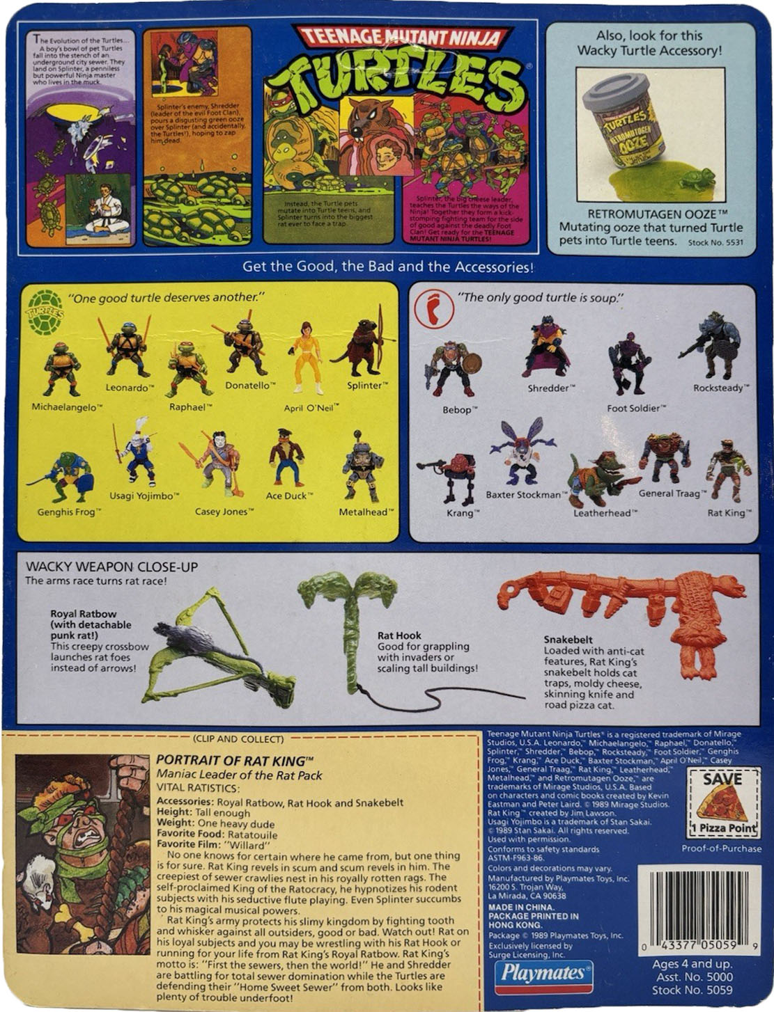 Vers le troisième trimestre 1990, Playmates Toys a réédité son Rat King avec un blister identique au précédent. Toutefois, une étiquette « product of China » est collée à l’arrière (type 6A-2, comme Ace Duck, Genghis Frog ou encore le General Traag)