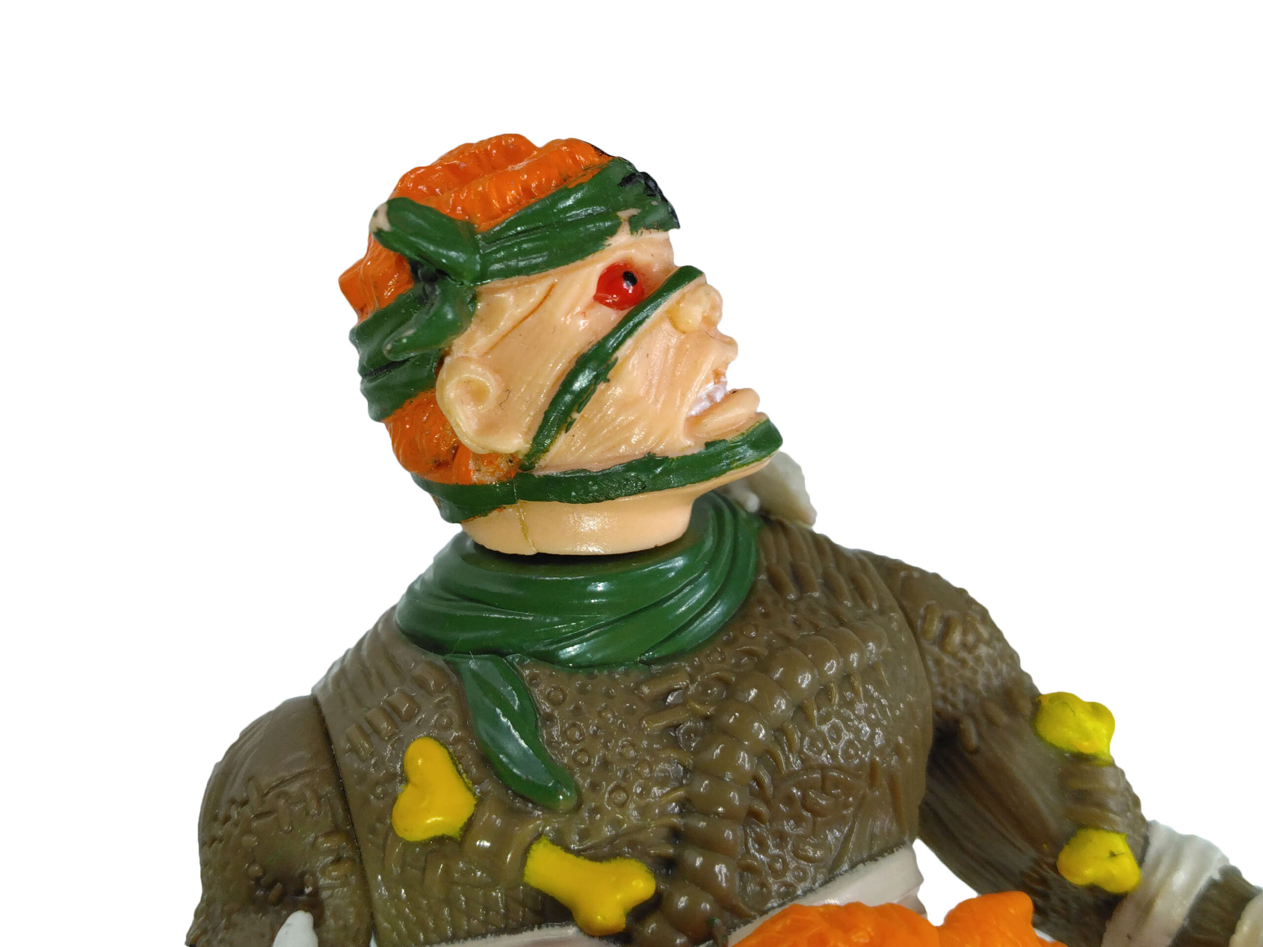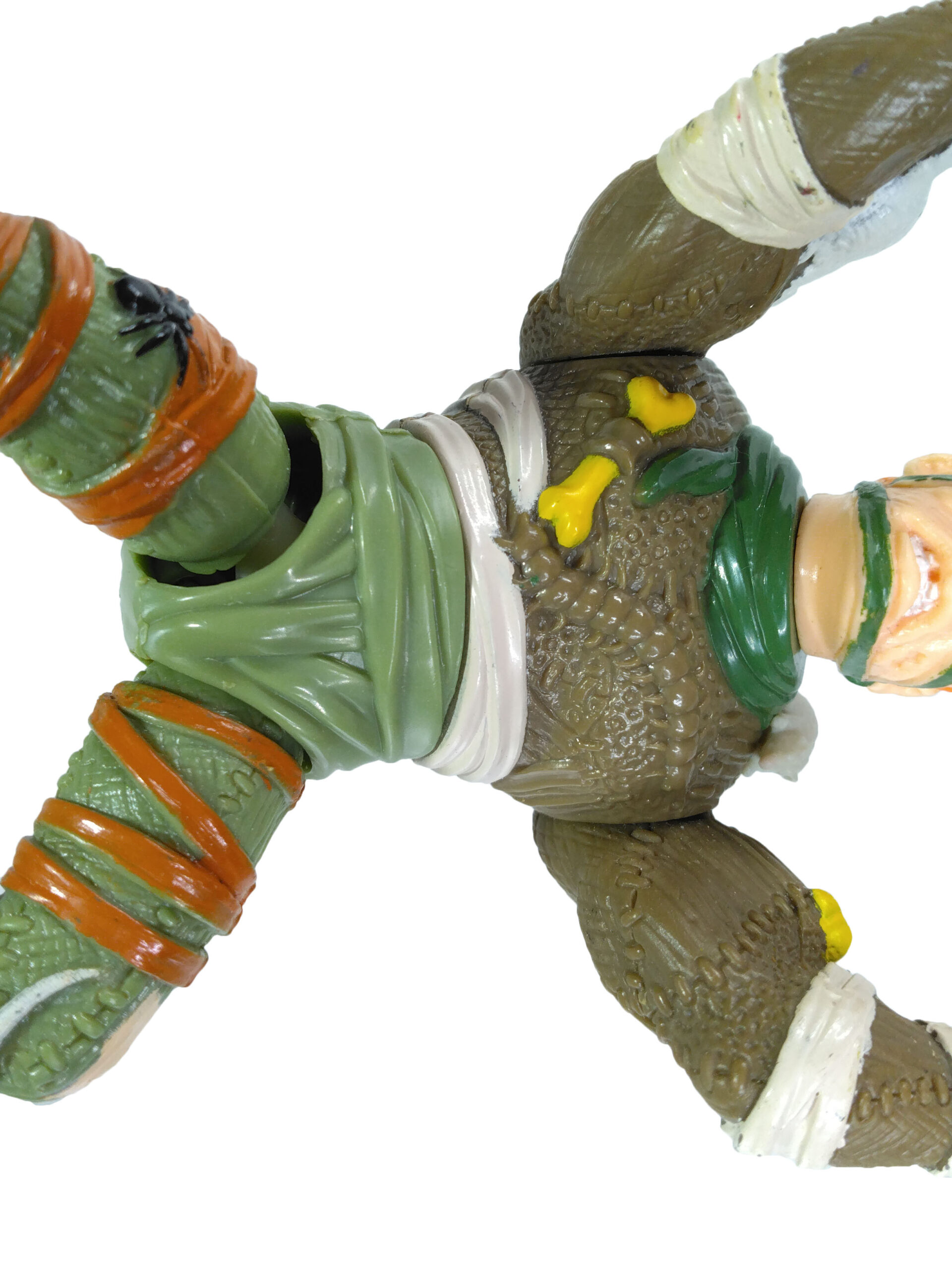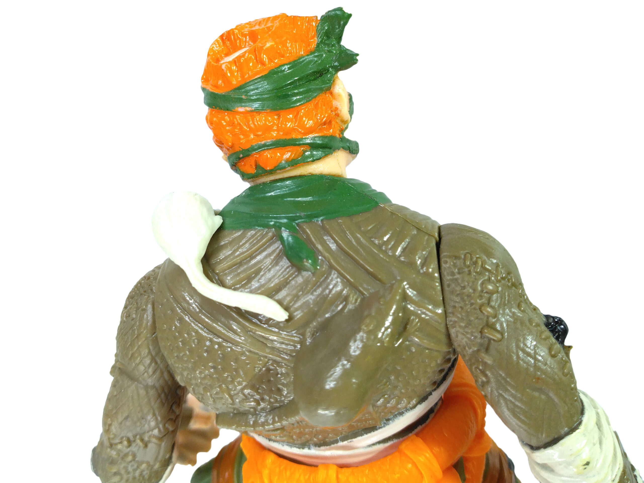 Le personnage fourmille de détails sur sa combinaison, entre rapiècements, animaux. La ceinture est extrêmement belle. C’est dommage que Playmates n’ait pas proposé de peinture pour celle-ci.