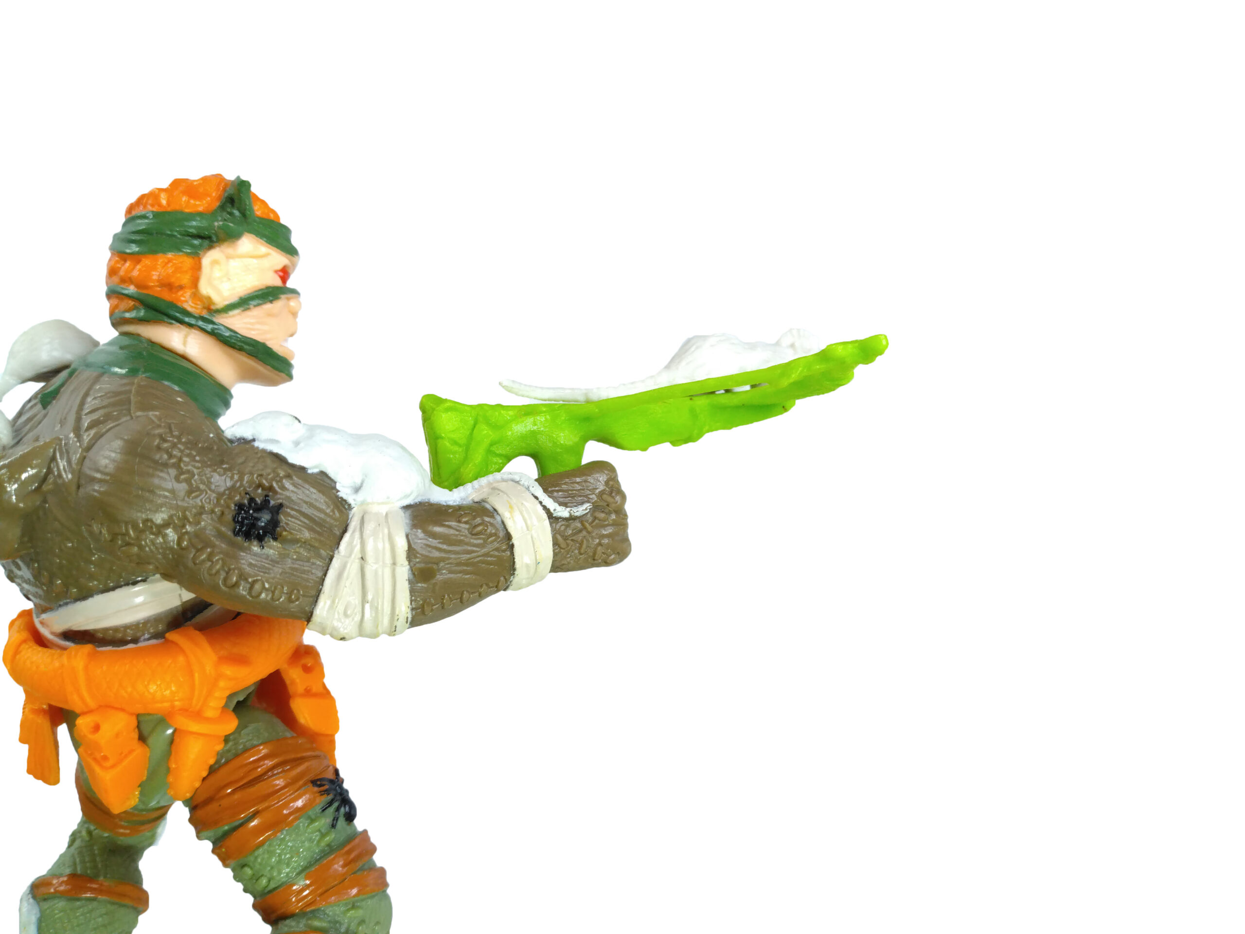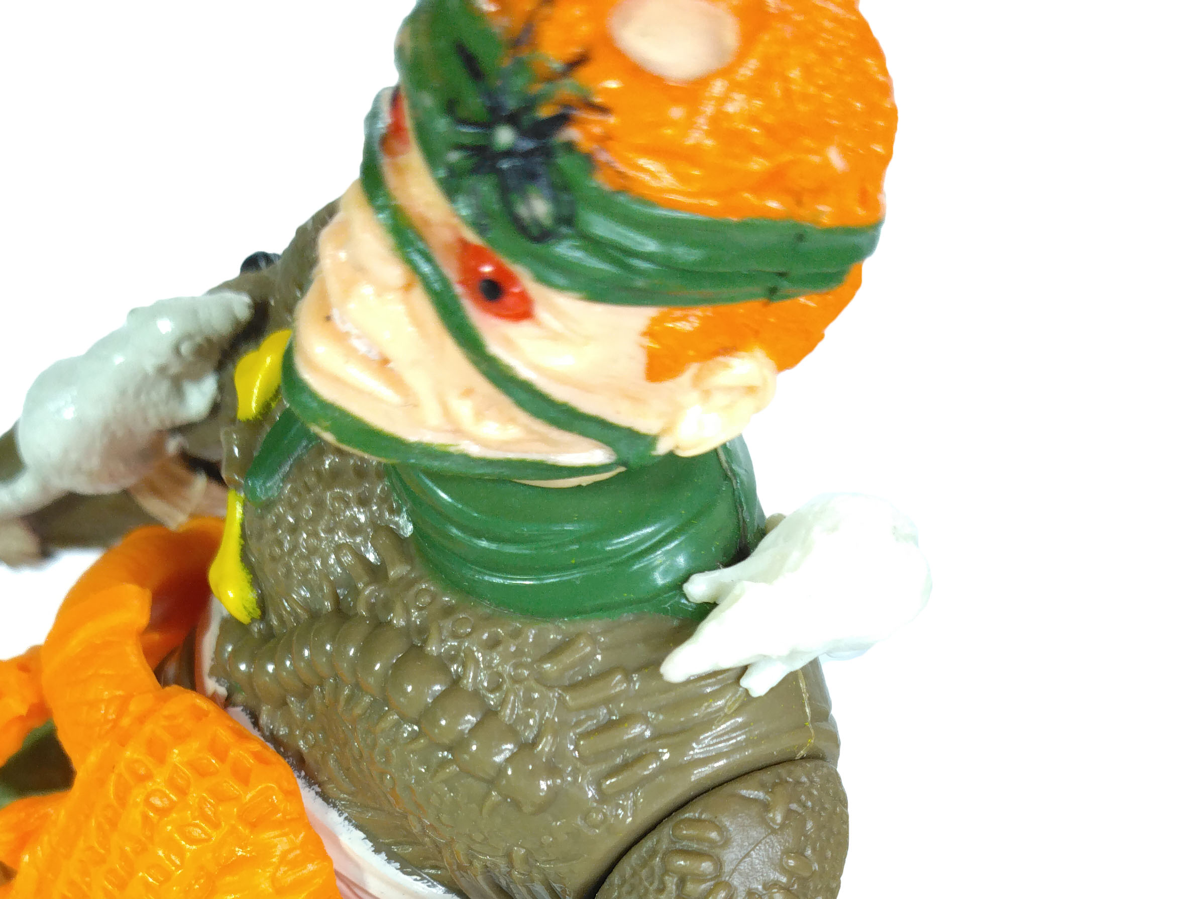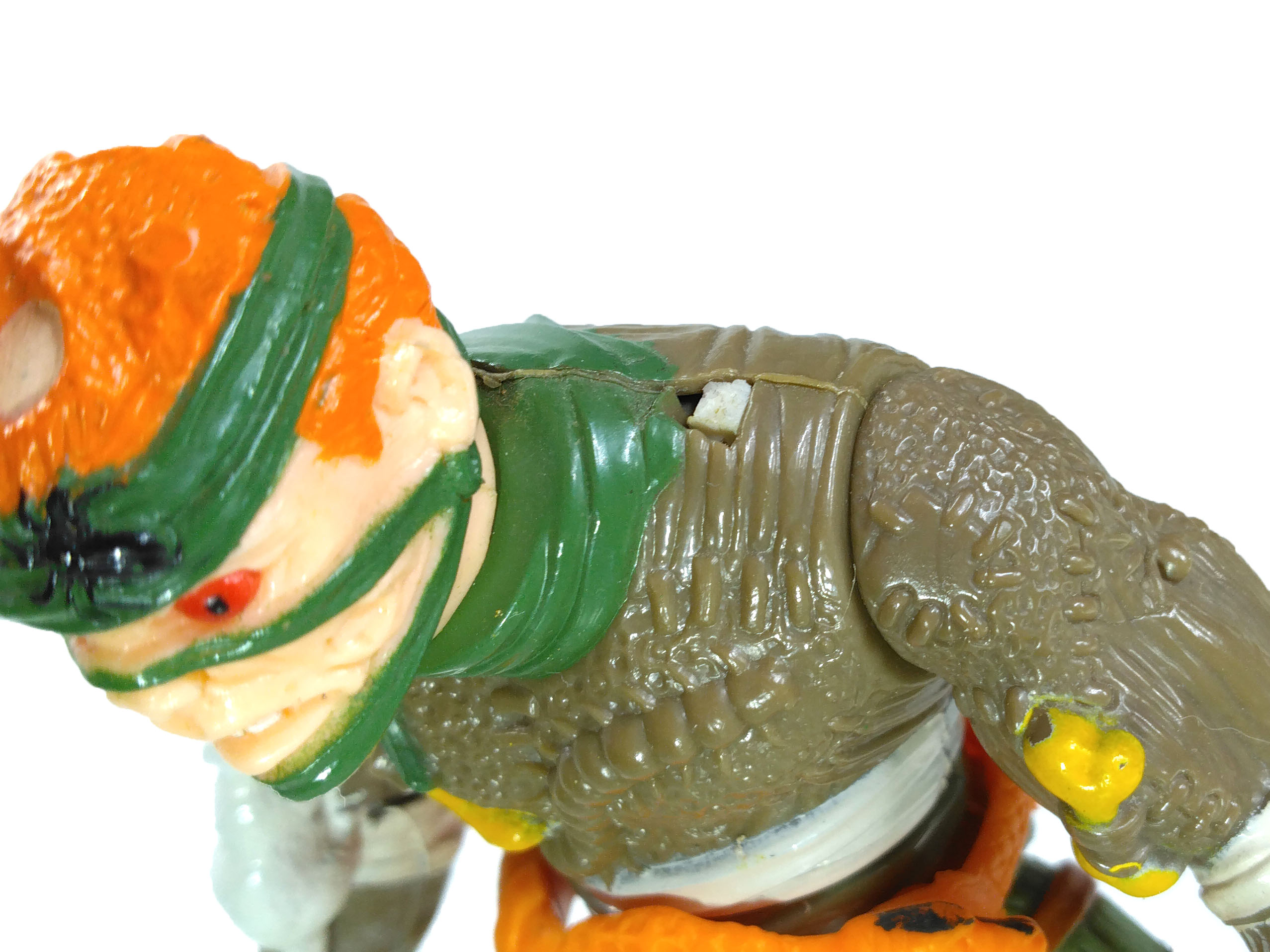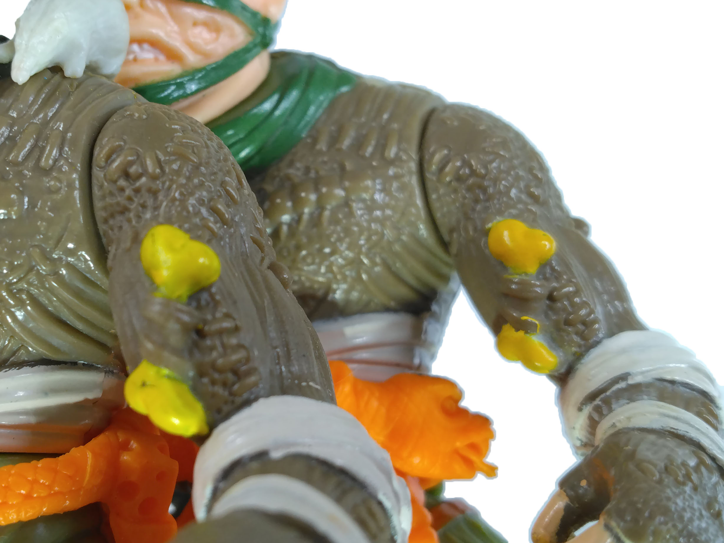 Le personnage fourmille de détails sur sa combinaison, entre rapiècements, animaux. La ceinture est extrêmement belle. C’est dommage que Playmates n’ait pas proposé de peinture pour celle-ci.