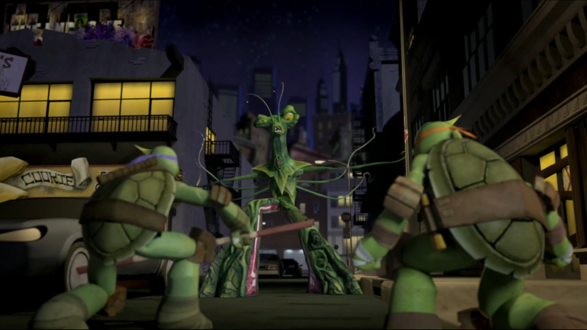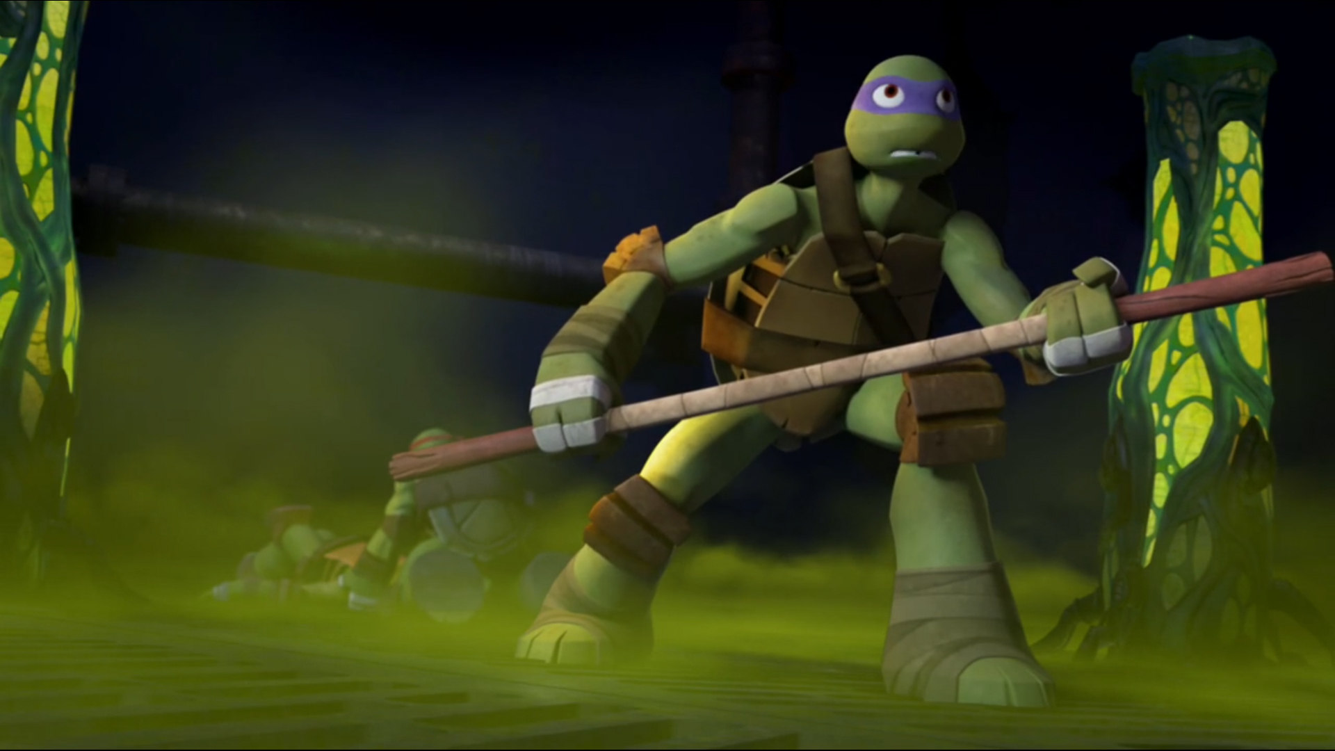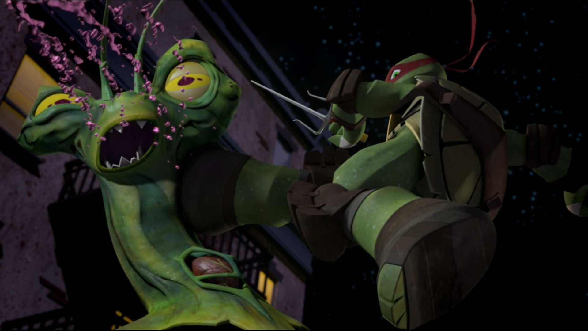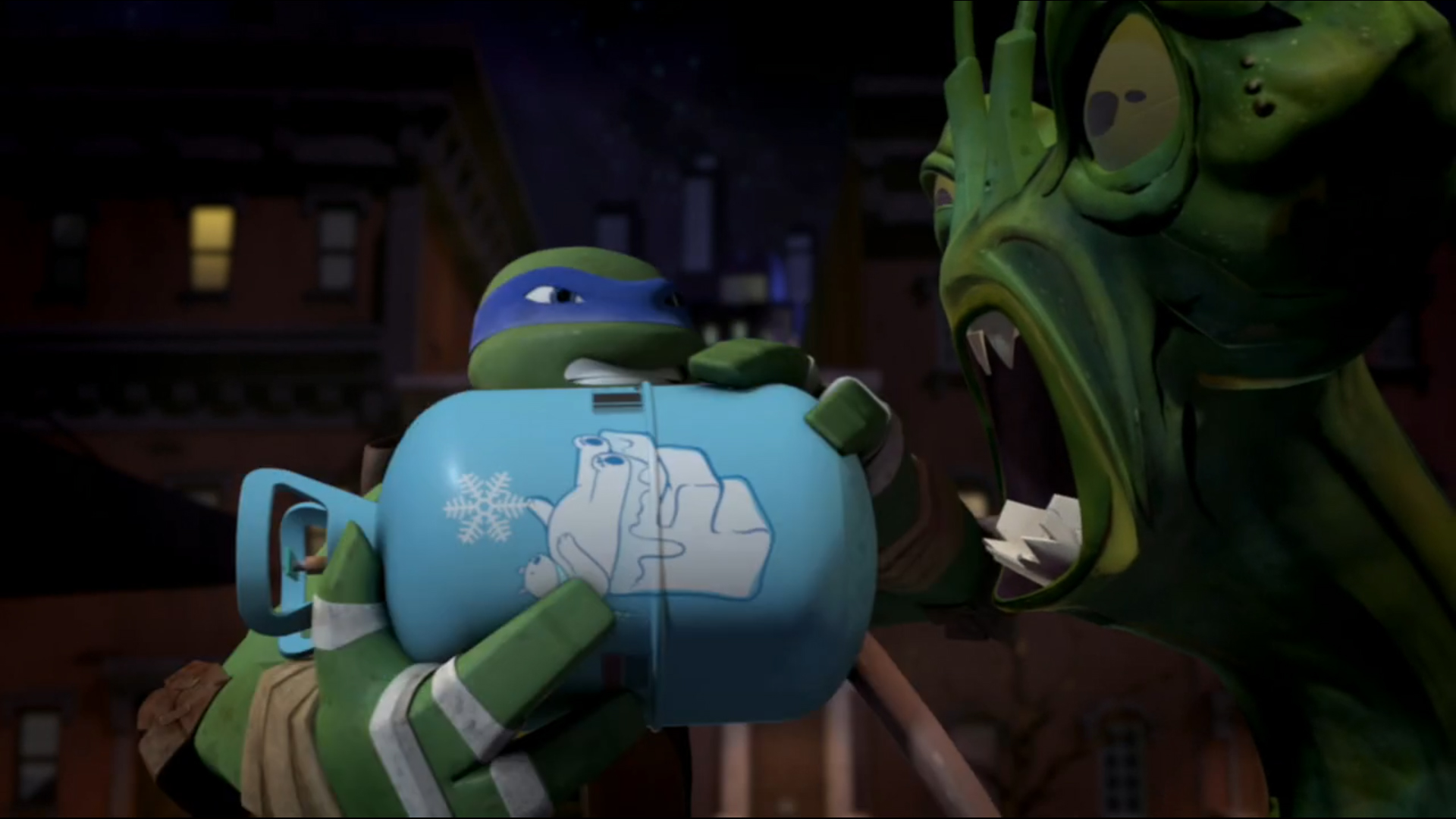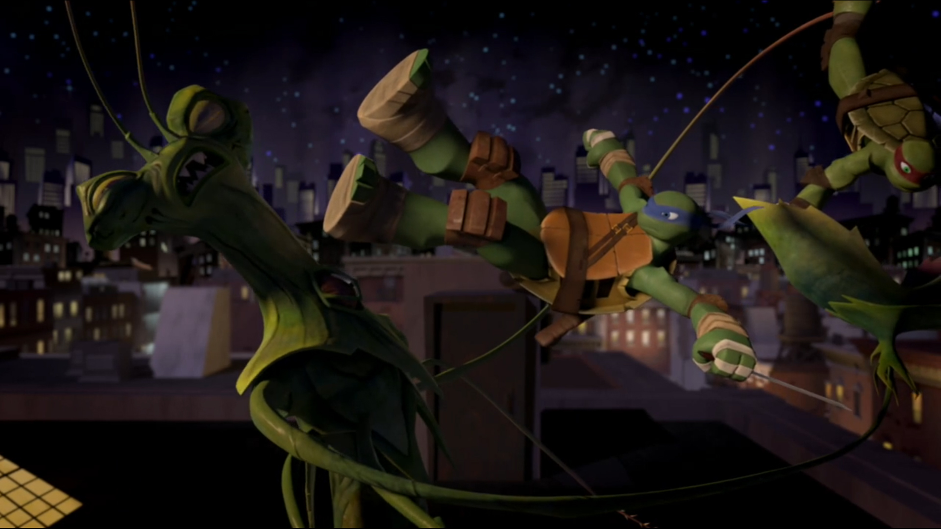 Les tortues prenaient Snakeweed en chasse à travers les rues de la ville. Dans sa course, le mutant emportait un livreur de pizza au grand malheur de Michelangelo et s’enfonçait dans une ruelle. Leonardo le pensait piégé. Hors de question de l’attaque frontalement, ce serait peine perdue. Il préférait le surprendre par les hauteurs et suggérait qu’ils montent aux toits. Arrivés au sommet des maisons, ils se rendaient compte que Snakeweed avait disparu. Raphael était agacé par cet échec qu’il imputait au chef de leur équipe qui avait pris la pire décision possible. Il jugeait que s’ils avaient attaqués frontalement l’herbe mutante, ils auraient remportés le combat. Leonardo en avait assez de ces reproches et lui confiait les rennes de l’équipe. Il s’en allait.