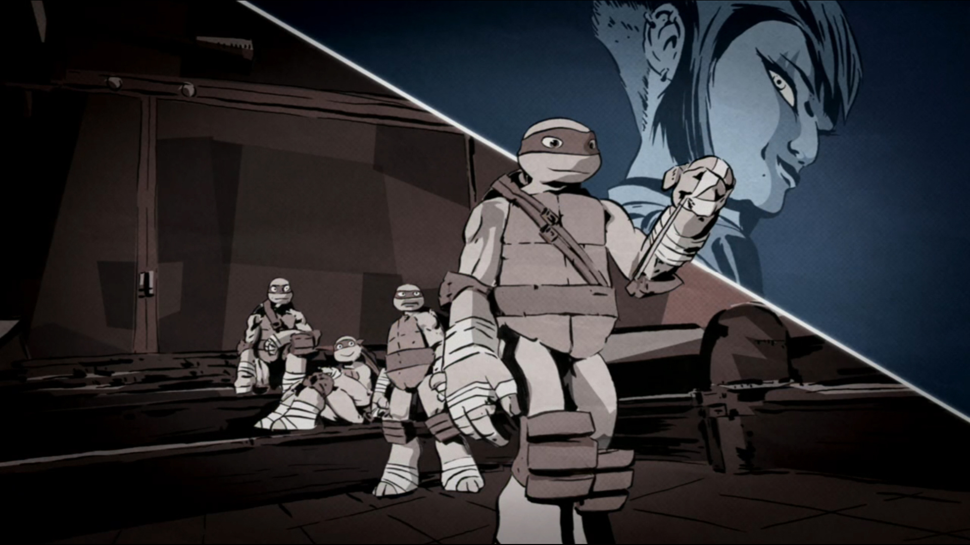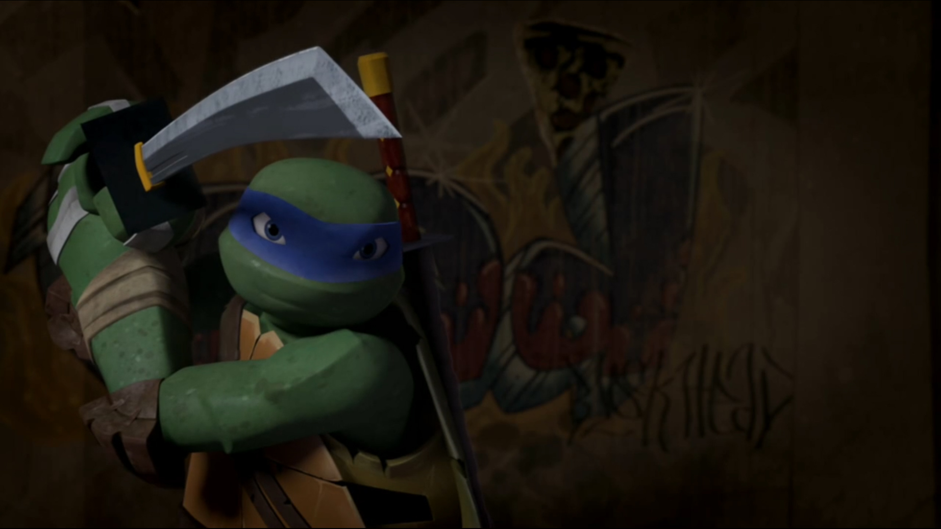 Face aux ordres de Splinter, Leonardo essayait de retrouver ses frères à partir de ce dont il se souvenait de la piste de Donatello. Il était bientôt rejoint par la mystérieuse Karai qui l’abordait en le taquinant avant de sortir de nouveau sa petite lame. La tortue lui répondait en proposant un duel au sabre. Les deux guerriers se jaugeaient avant de s’affronter férocement – non sans quelques provocations au passage. Finalement, Leonardo sortait son deuxième sabre pour en finir. Le combat se poursuivait dans la provocation pour Karai, qui saisissait son adversaire à la gorge tout en se moquant du chemin de vie qu’il avait choisi. Elle l’invitait à le retrouver plus tard au sommet d’un immeuble qu’elle pointait de son sabre.