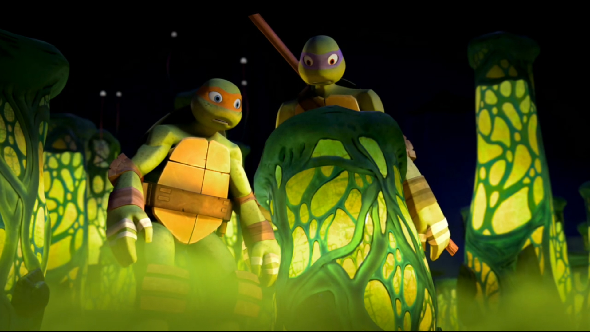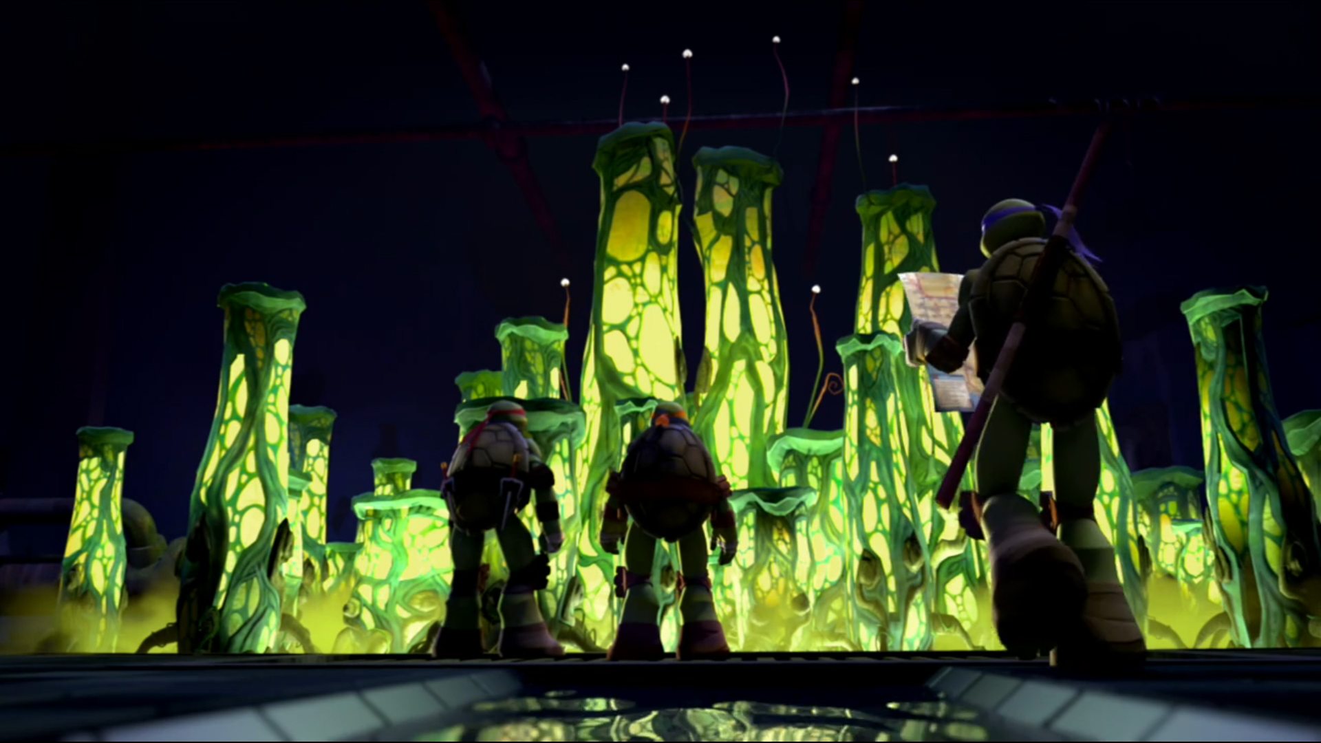 Pendant ce temps, les autres tortues progressaient dans les égouts à la recherche de Snaleweed. Finalement, les frères arrivaient à la cachette du mutant et découvraient une pièce remplie d’étranges cocons végétaux luminescents. À l’intérieur ils voyaient les corps des personnes qui avaient été enlevées. Donatello se demandait s’il ne cherchait pas à les fertiliser. Raphael ordonnait à ce qu’ils sortent les otages de là. Deux d’entre eux se relevaient et partaient, ne prêtant même pas attention aux tortues qui restaient cachées derrière les cocons.