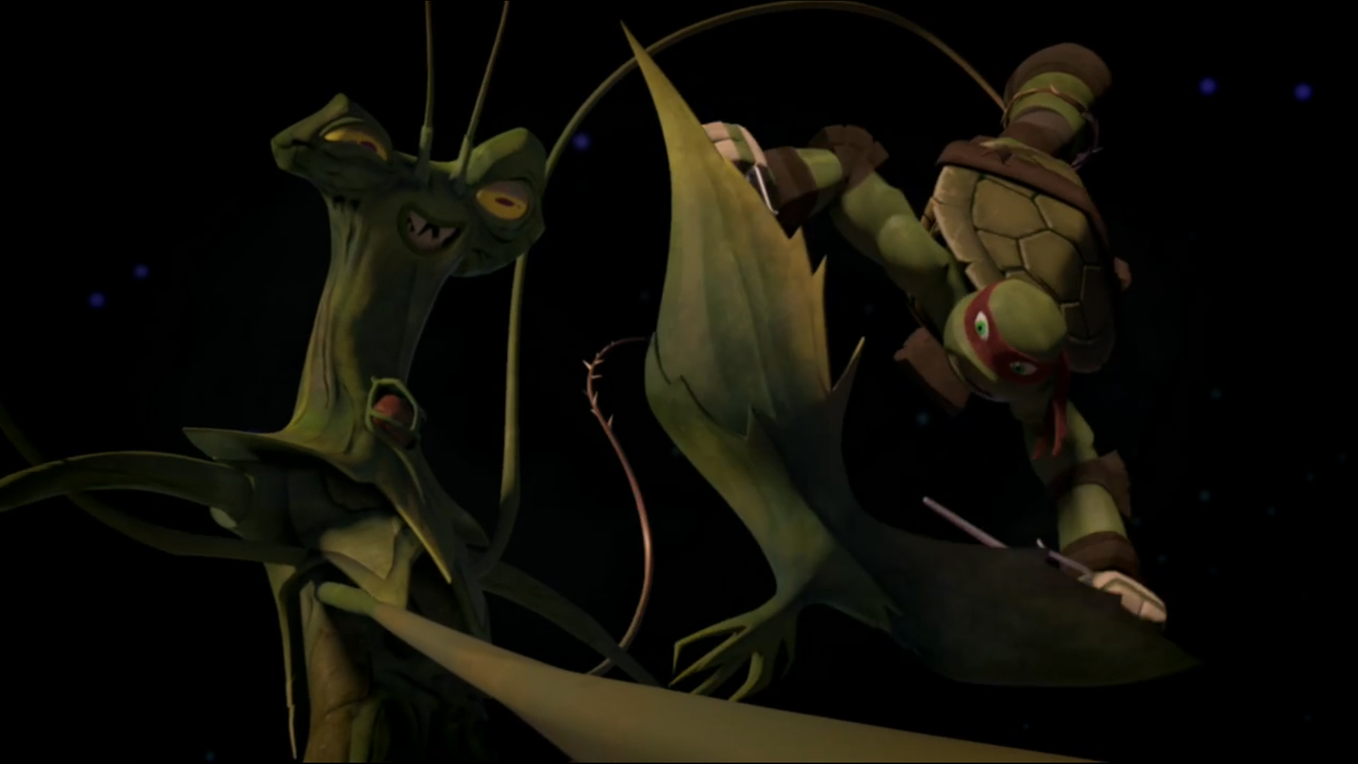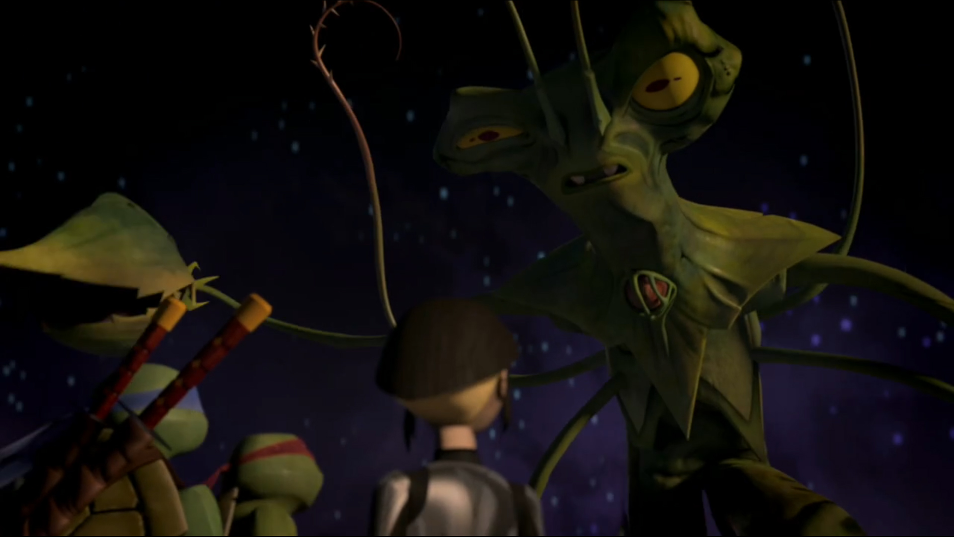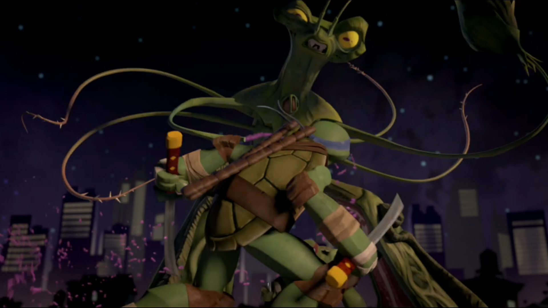Au même moment, Raphael arrivait et retrouvait son frère, maîtrisé par la jeune femme. Soudain, Snakeweed arrivait, attiré par la boule qu’il avait lancée sur la carapace de l’intrus dans son repaire. Les deux tortues avaient fort à faire contre le végétal géant. Karai quant à elle regardait le combat sans bouger, jusqu’à ce que Leonardo lui demande de l’aide. Elle lançait son arme en direction de la tortue avant de s’en aller. Le ninja s’emparait de la lame et tranchait une liane avant de coller un coup à Snakeweed.