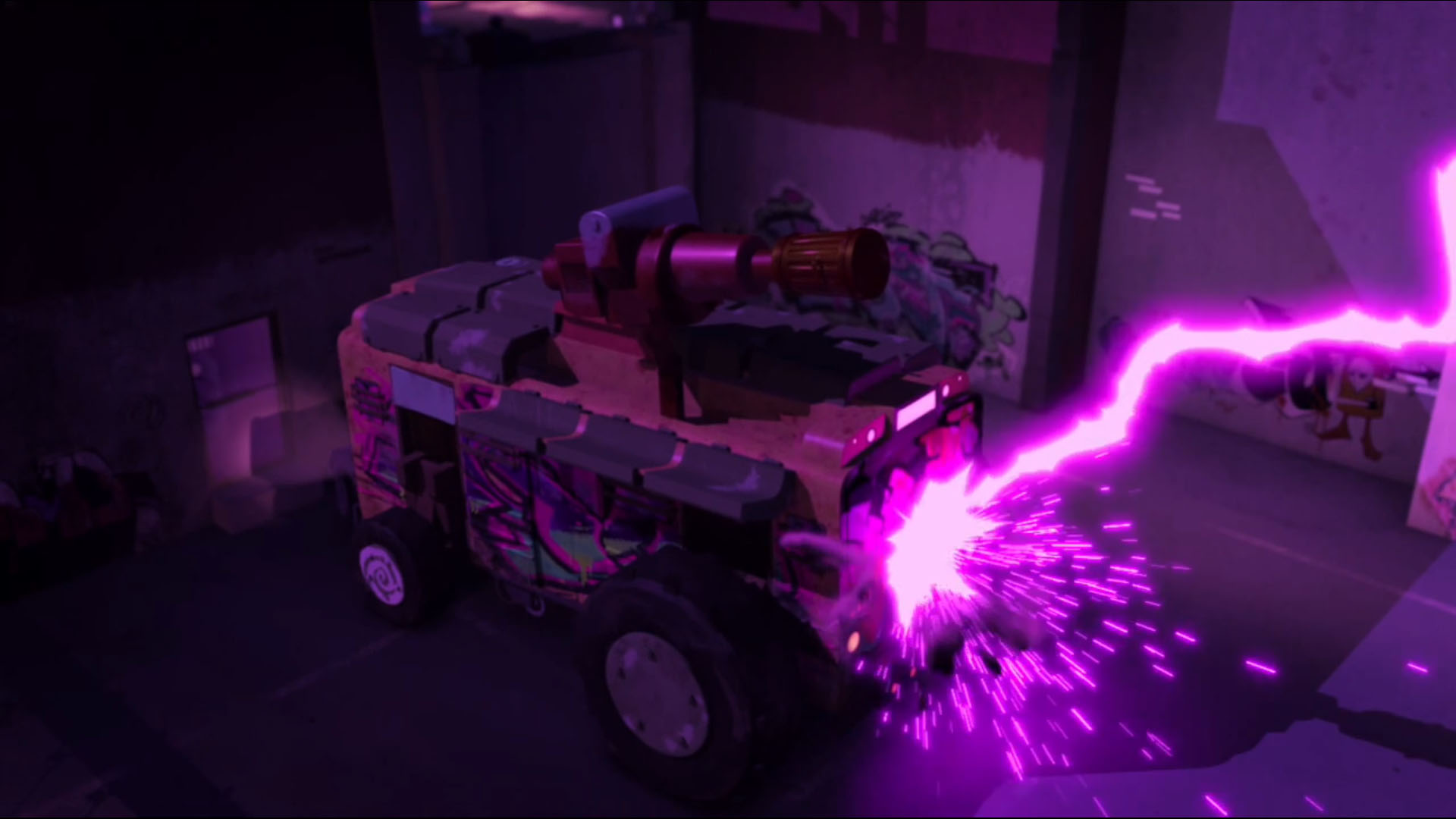 Le Shellraiser parcourait les rues de la ville en direction d’un signal pouvant être le vaisseau. Finalement, ils l’avaient trouvé. La machine leur tirait dessus, Leonardo faisait demi-tour et cherchait à éviter les tirs. Michelangelo indiquait à son frère le chemin à prendre pour échapper à la machine, mais les précipitait vers un cul de sac. Le véhicule essuyait un tir long jusqu’à ce que quelque chose le fasse dévier. Il s’agissait de Karai, qui montée sur une moto, avait bondit sur l’appareil depuis un toit d’immeuble. Leonardo voulait lui venir en aide, mais Donatello lui rappelait que le véhicule ne pouvait plus encaisser d’autres tirs. Sans plus tarder, la tortue au bandeau bleu sautait dans la carapace furtive et suivait le vaisseau à travers les rues. Karai tombait du vaisseau et se faisait reprendre en plein air par la tortue. Il leur fallait encore pouvoir échapper au vaisseau qui les suivait à la trace.