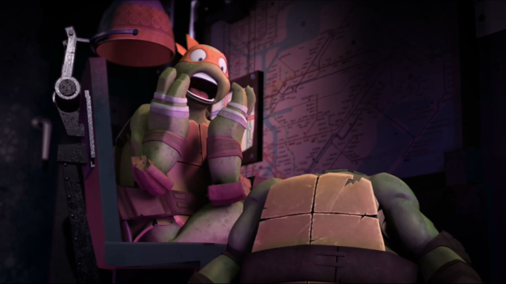 Les tortues partaient à bord du Shellraiser pour venir en aide à Timothy. Le véhicule ne tardait pas à retrouver le Foot Clan dans les rues et renversait quelques motos. Fishface se lançait à la poursuite de ses ennemis et sautait sur le toit du véhicule. Raphael le repoussait du canon à ordures, mais le poisson freinait le véhicule de ses jambes robotiques sur le sol. Le Shellraiser se retournait, la course poursuite était terminée. Donatello montait à bord du Stealth bike pour rattraper leurs ennemis. Il estimait que la survie de Timothy était de sa responsabilité.