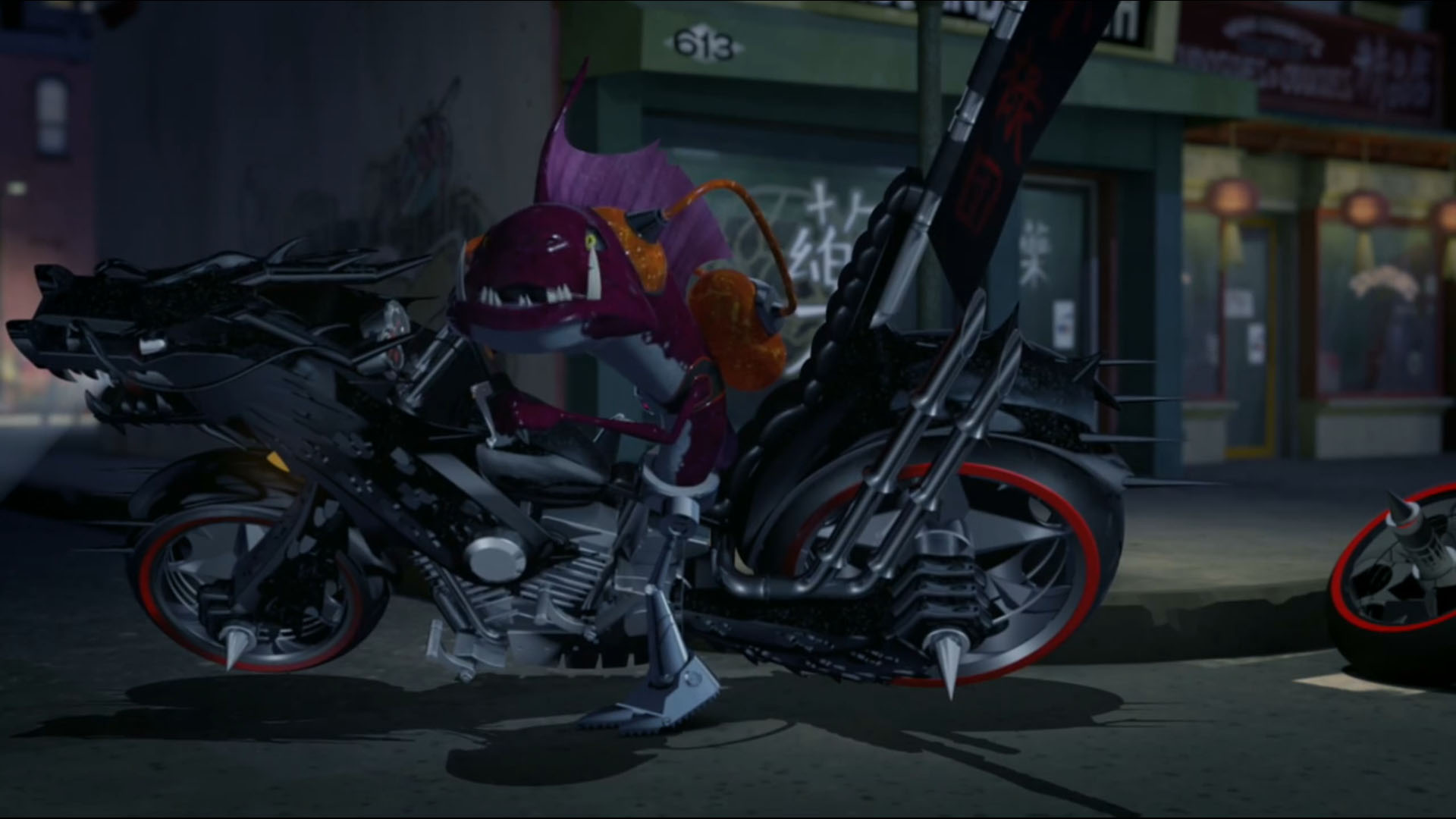 - Cet épisode introduit les moto du Foot Clan, des véhicules proposés en première wave par Playmates Toys, mais très rarement vus au cours du dessin animé.