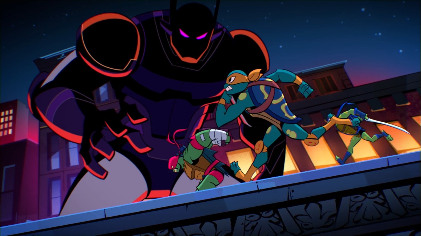 Après avoir consulté les ressources indubitablement correctes d’internet, les tortues savaient comment combattre l’addiction de leur frère. C’est alors que les informations alertaient qu’un robot mecha attaquait New York. Rien à faire, Donatello ne voulait toujours pas bouger.