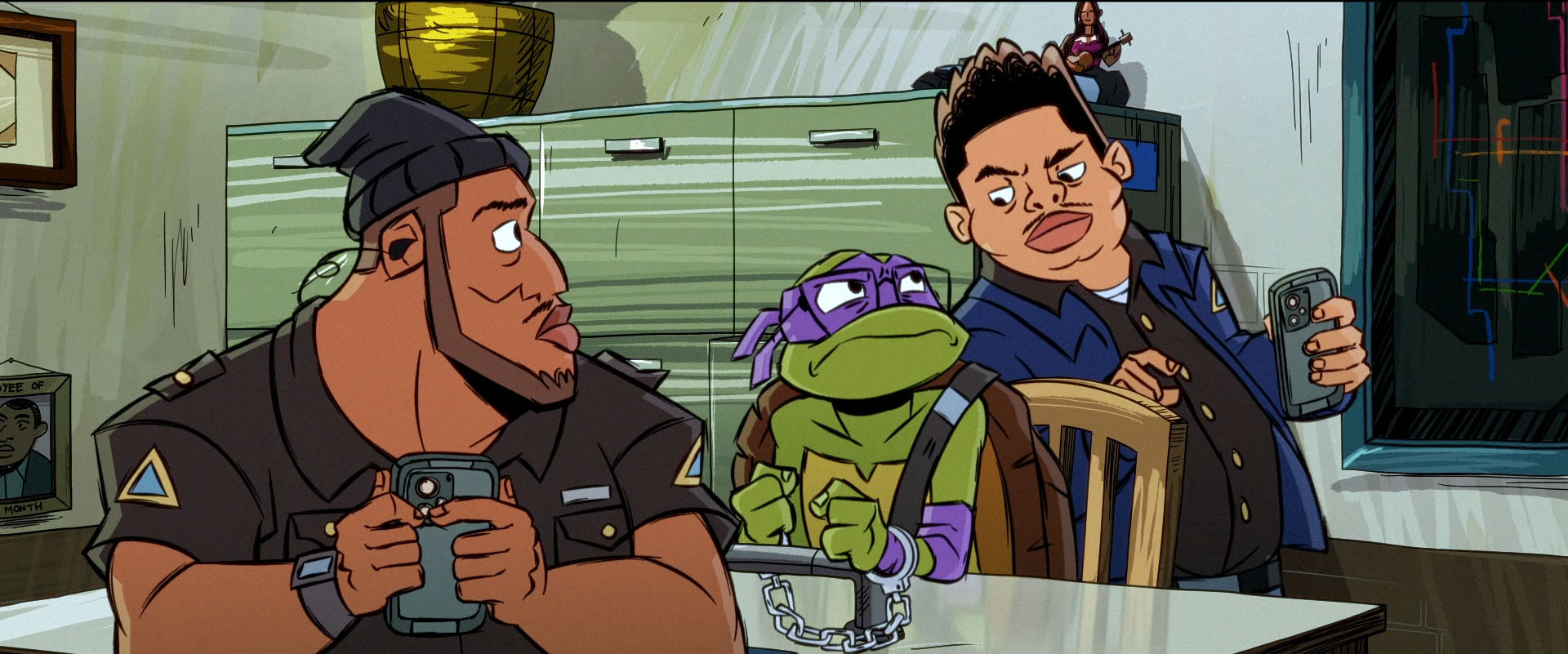 La tortue était amenée dans une petite salle, le commissariat du métro, pour être entendue. Les deux hommes savaient plus ou moins qui était Donatello. L’un des héros de la ville ! Plutôt que de l’écouter, ils préféraient prendre des selfies. Un robot tueur ? Peu crédible. Puis tout d’un coup ils lui tendaient un livre. Les mémoires du métro, édition spéciale mutants. Ils renseignaient les témoignages des personnes qu’ils faisaient venir là pour un jour les envoyer à un producteur. Avec assez d’argent, ils pourraient ouvrir un restaurant sur le thème de la police : le Cop-Acabana !
