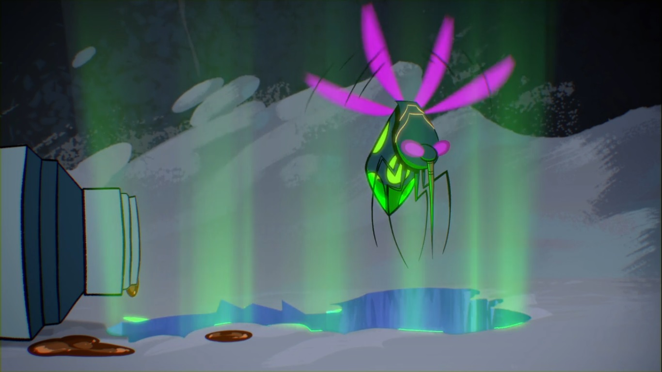 L’insecte se lança à la recherche d’une proie… Ghostbear, qui était parti du parc furieux, s’était retrouvé coincé dans la neige, et fut la victime de l’oozequito. Il devint un lutteur ours polaire. Ses grognements se faisaient entendre dans tout le parc. Il se jeta sur les tortues, prêt à prendre sa revanche.