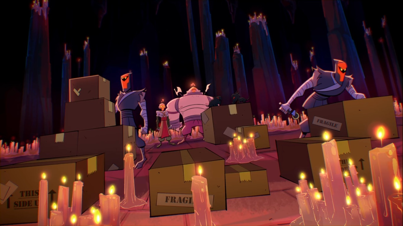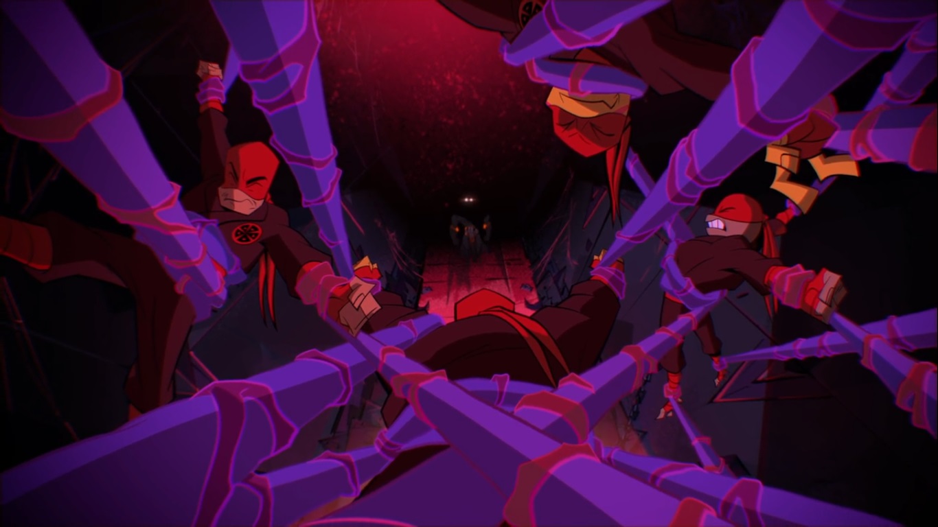 Alors que les tortues célébraient leur victoire, elles entendirent la voix de Draxum dans leur dos. Des tentacules les saisirent tous les cinq. Le yokai savourait la puissance qui lui tendait les bras…