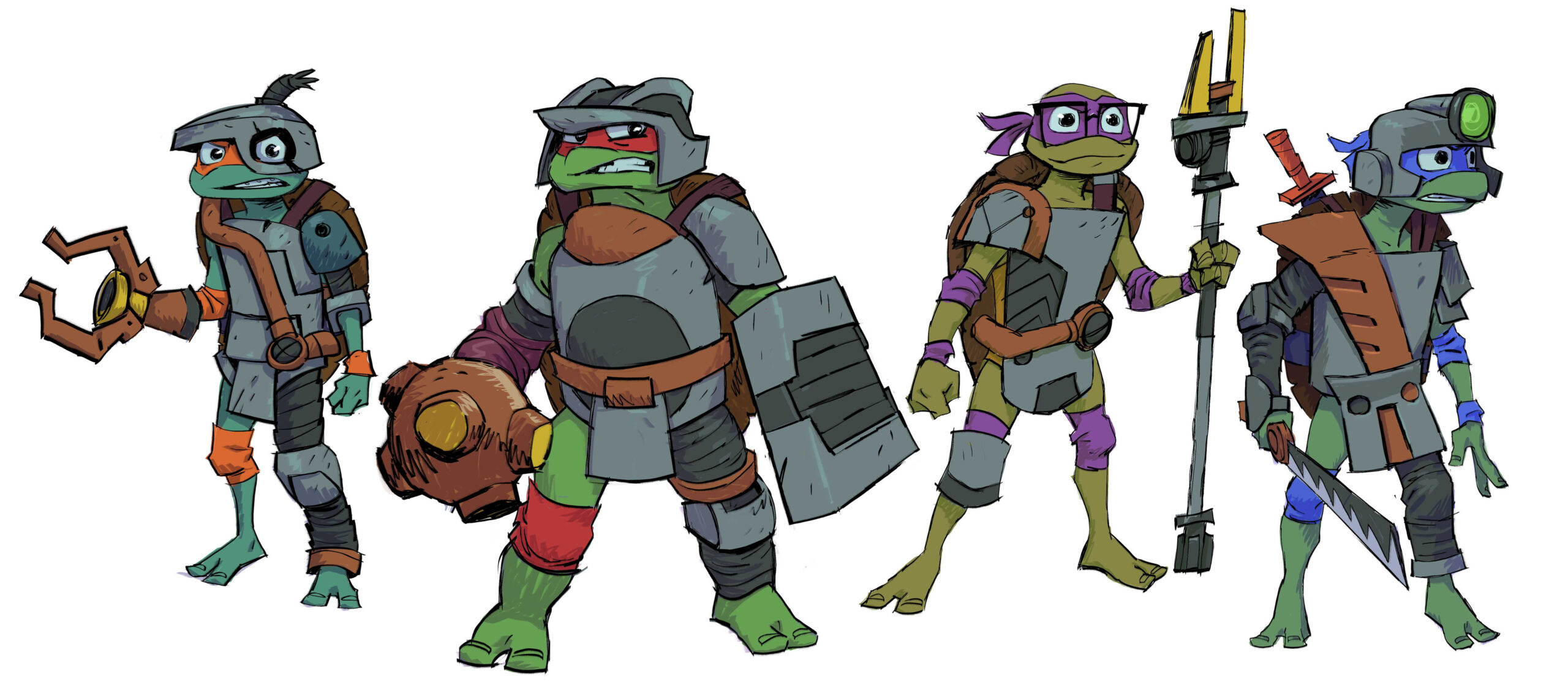 L’artiste Rustam Hasanov a partagé sur son Art Station quelques travaux préliminaires sur les tenues robotiques des tortues pour cet épisode.