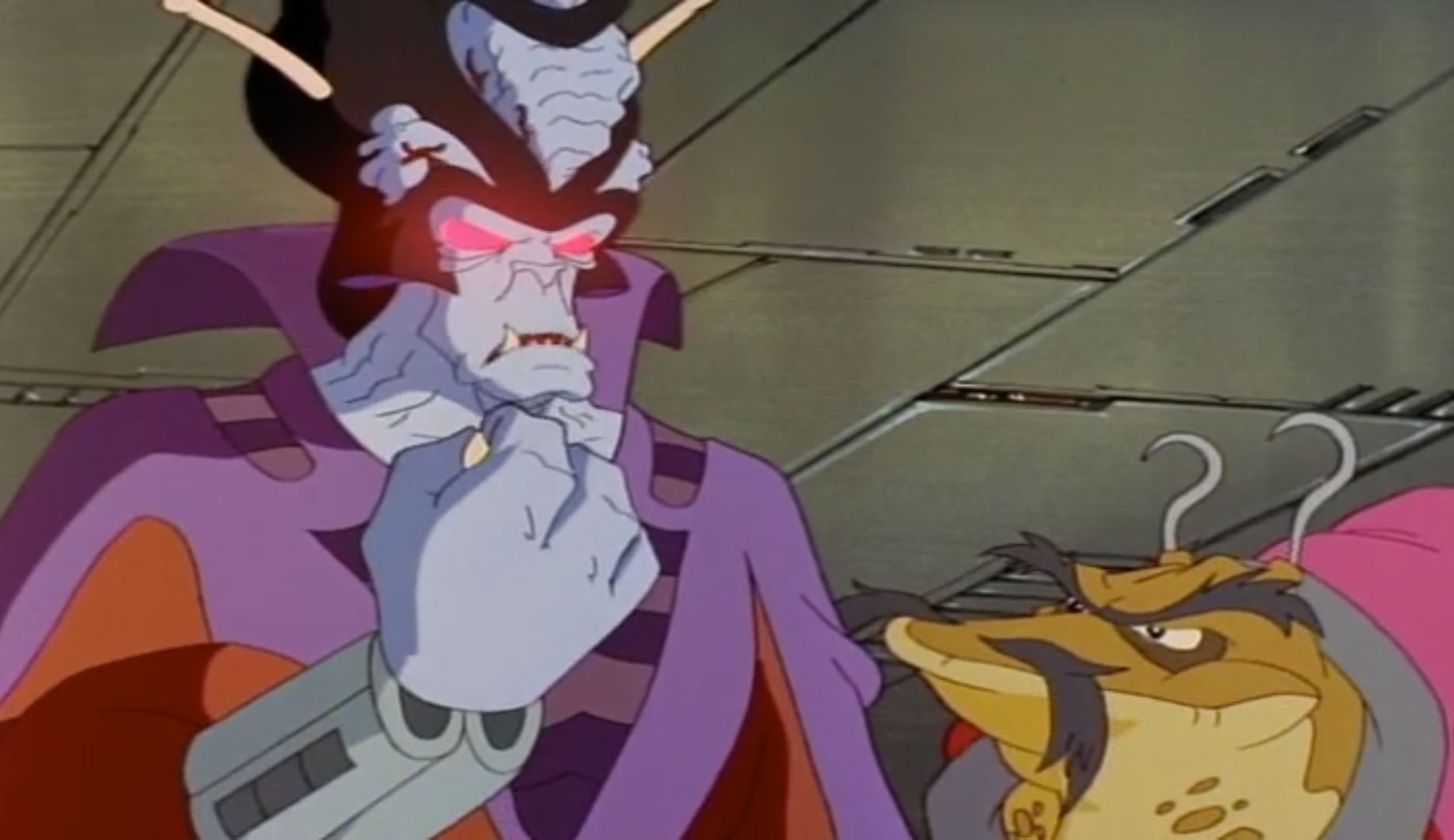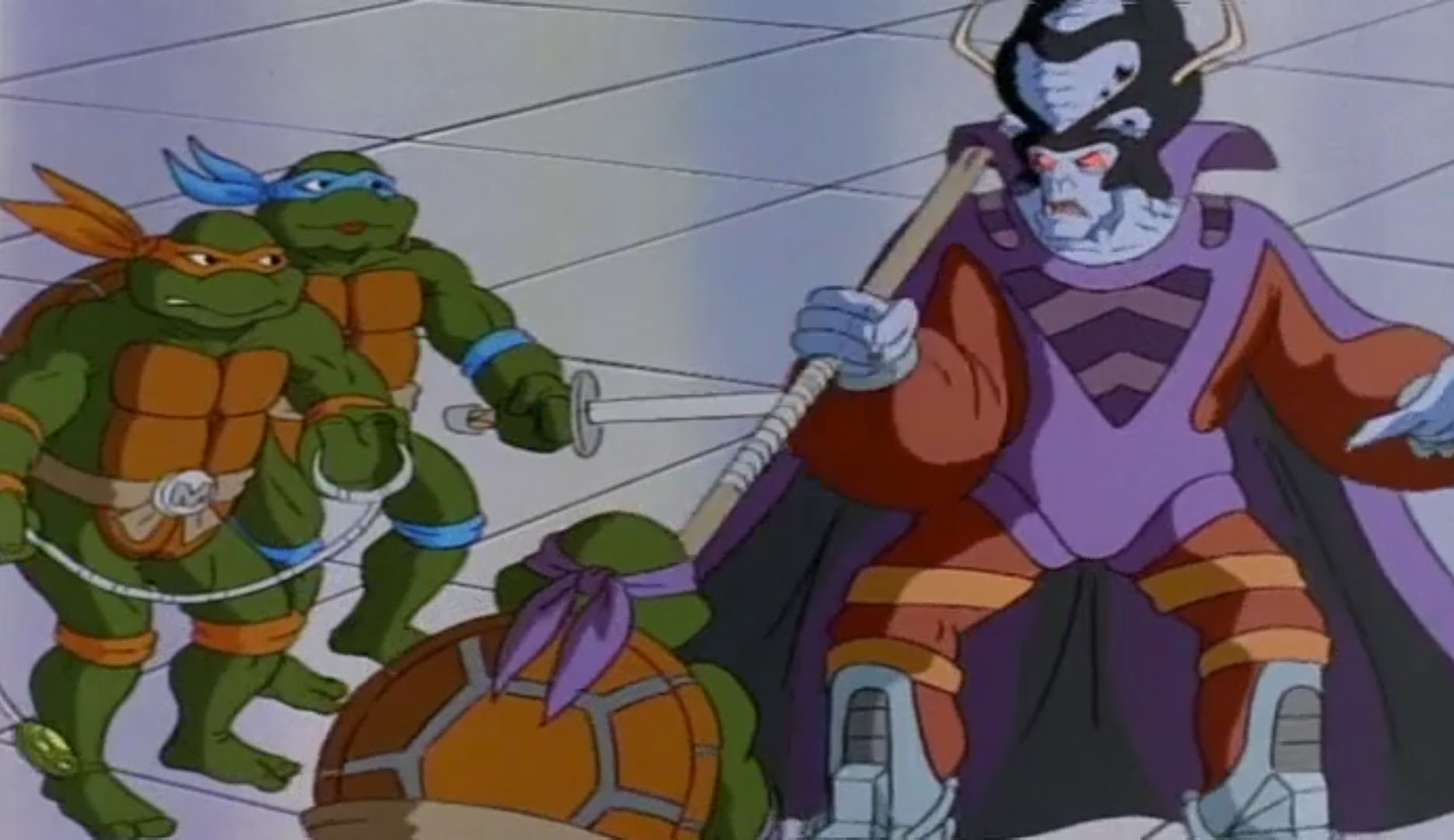 Finalement, Shredder arrivait au téléporteur. Alors qu’il cherchait à composer les coordonnées de la Terre, Dregg arrivait avec son armée. L’humain essayait de lui tenir tête en lançant des objets, mais il n’y avait rien à faire. L’extraterrestre possédait les connaissances de Krang. Il pouvait anticiper tous les gestes de son adversaire. Dans un élan de dernier espoir, Shredder se lançait vers les Bat-men, qui tiraient sur une paroi du vaisseau. Une brèche était créée. Tous se cramponnaient pour ne pas être aspirés dans l’espace. Shredder profitait de cet instant pour terminer la programmation du téléporteur et filer avec Krang sur Terre. Dregg était furieux. Il les voulait de retour au plus vite sur son vaisseau.