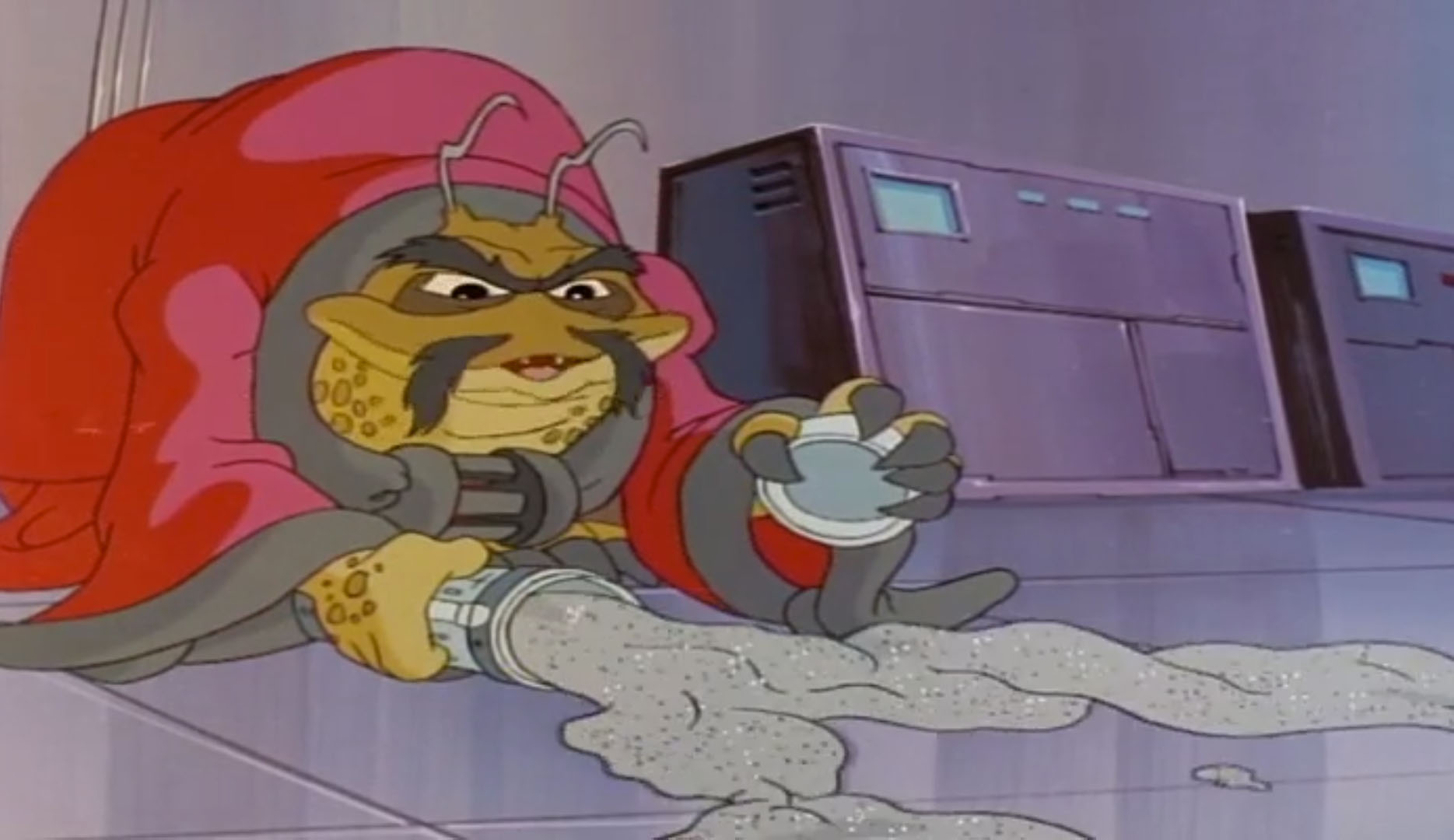 Ni Mung ni Dregg ne s’étaient aperçus que Shredder avait rompu le tuyau qui le reliait à la machine de drainage. La puissance qui s’emmagasinait en Dregg produisait des éclairs. Le seigneur se levait remerciant ses sujets de lui avoir donné leurs facultés mentales et physiques. C’est alors qu’il se rendit compte ne posséder aucune information à propos de Shredder. Se retournant vers sa table, il se rendait compte que l’homme avait pris la fuite. Le seigneur de l’espace envoyait ses Bat-men à ses trousses.