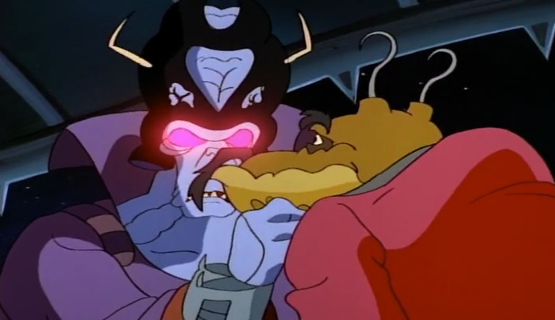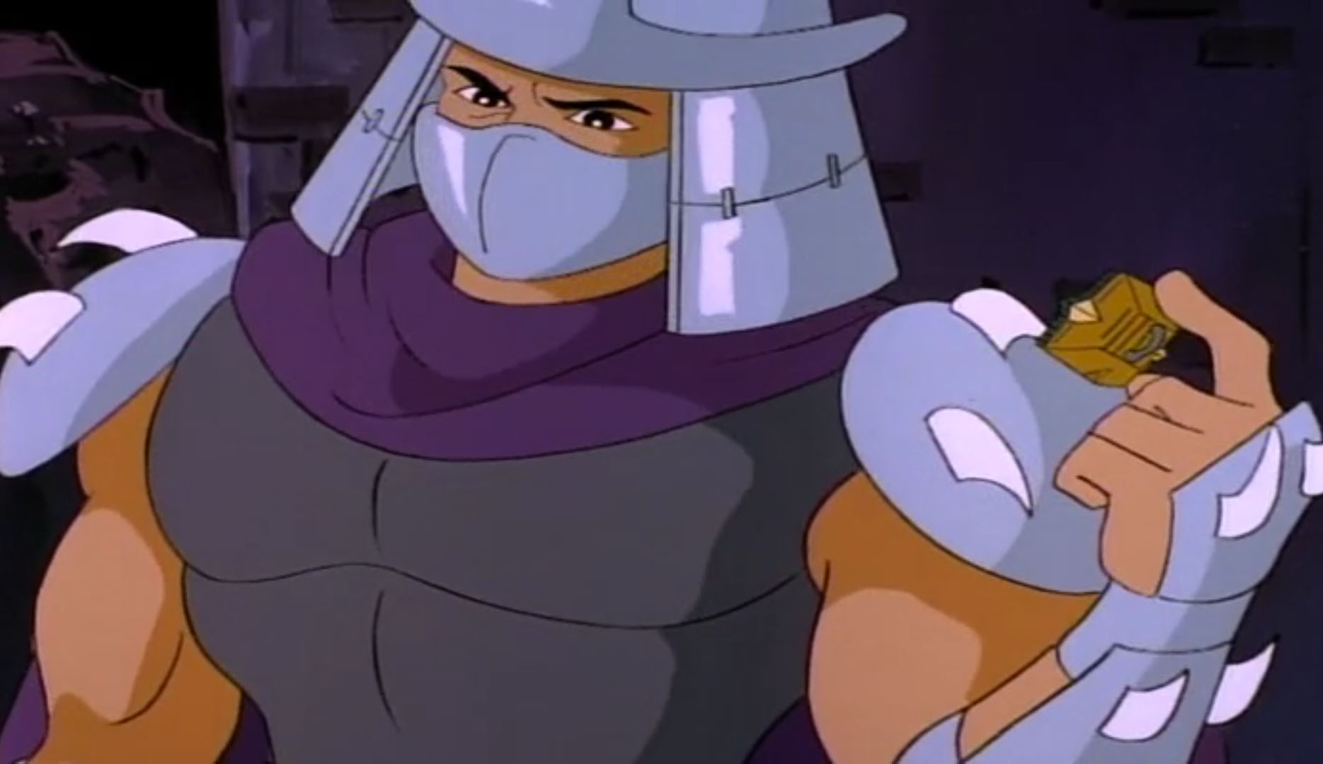 Pour investir la centrale, Krang et Shredder se faisaient passer pour des prisonniers du larbin hypnotisé de Dregg. Celui-ci pointait son arme en leur direction pour les faire entrer, ce qui déplaisait terriblement à l’homme au masque de fer.