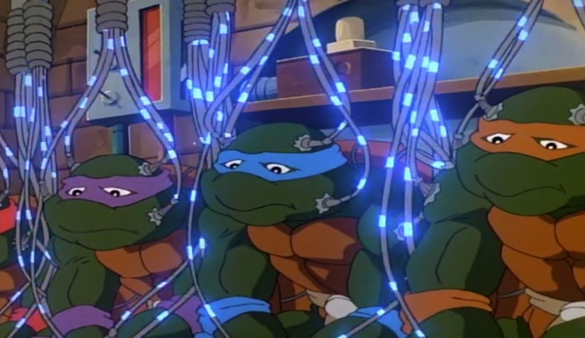De retour au repaire, Carter pensait pouvoir faire la transfusion d’énergie à partir du rayon de démutation. Le Donatello du passé n’avait jamais entendu parler de cet outil bien entendu. Les huit tortues étaient connectées par des câbles sur leurs corps. Le jeune homme enclenchait le système. Ce serait long ! Extrêmement long ! Environ une quinzaine d’heures !