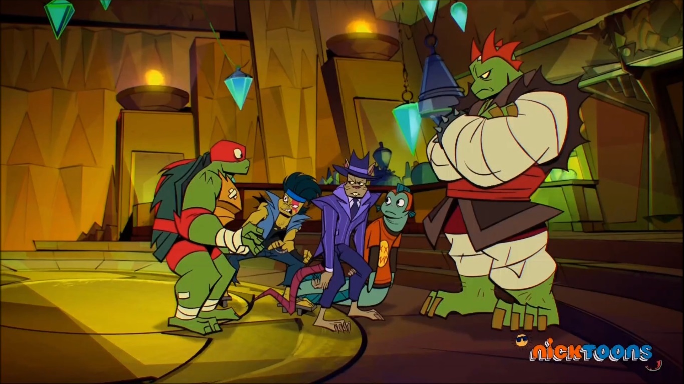 La soirée était une pure réussite, il était temps pour les Mud dogs d’apporter leur butin à leur supérieure : Big mama. Raphael était très mal à l’aise. Entrant dans les appartements de la yokai, au Battle Nexus, il fit tout pour qu’elle ne voie pas son visage. Mais Leonard le présenta. L’organisatrice des jeux reconnut la tortue et démenti sa réputation d’être le terrible Hideous Green ; le criminel ultra-recherché se trouvait justement dans sa loge. Bientôt, Raphael se retrouvait face un groupe d’ennemis prêts à en découdre après avoir découvert la supercherie. Une fois les trois membres des Mud dogs sur le carreau, le mutant prit la fuite, Hideous green à ses trousses. Le criminel avait la particularité de pouvoir croître de plusieurs mètres de haut. La tortue parvint malgré tout à l’assommer ; le colosse était aussi grand que stupide.