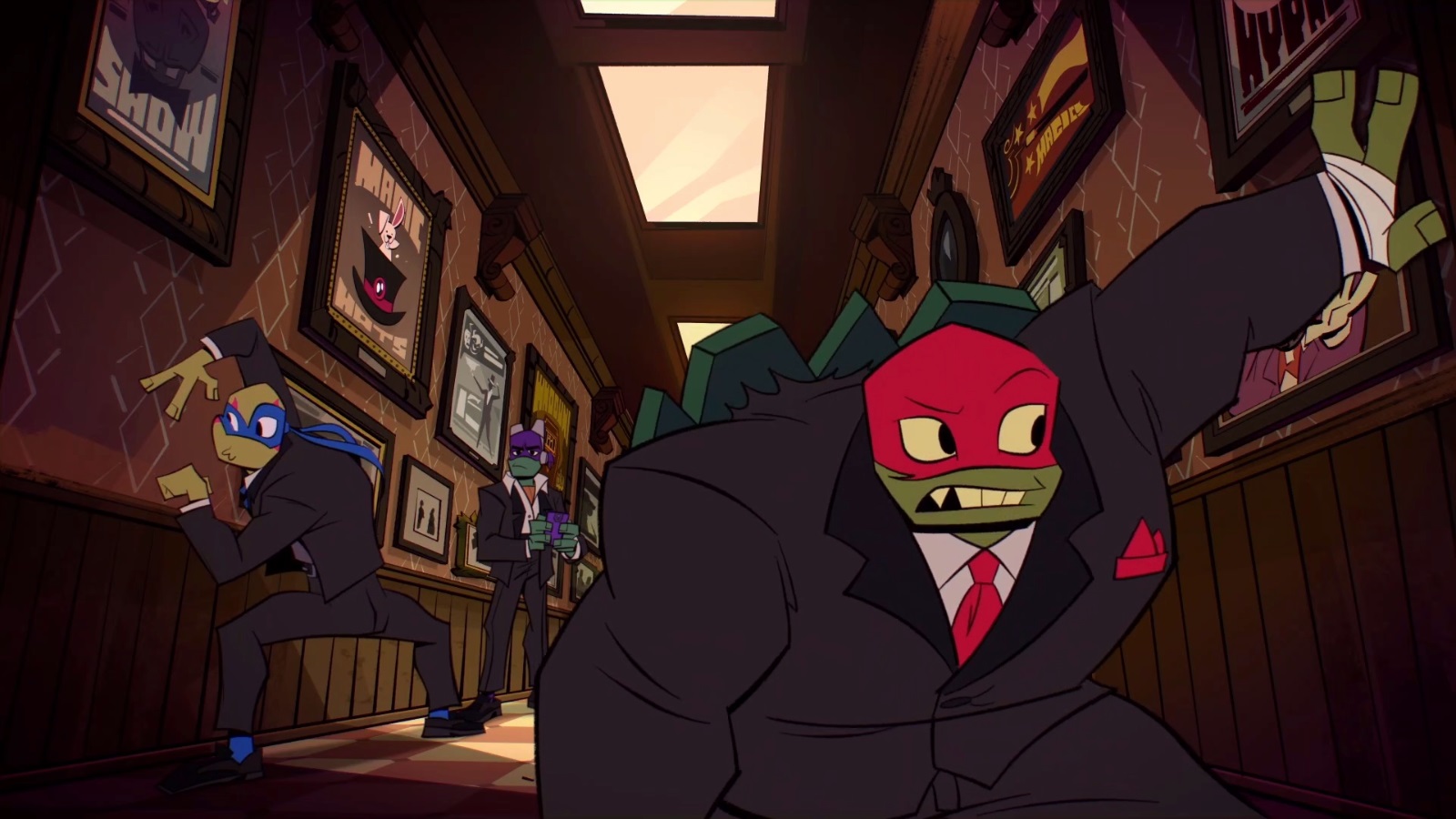 tortues cherchaient à s’habiller de manière très chic. Après avoir essayé des tonnes de vêtements, Michelangelo ne parvenait pas à se souvenir dans quel buts lui et ses frères faisaient cela. Soudain, la mémoire revint par bribes à Leonardo. La tortue avait gagné des tickets pour entrer dans un club qui révèlerait les notes des tours du magicien Houdini ! Ils devaient se mettre sur leur 31 pour entrer ! Alors que Donatello s’apprêtait à prendre des photos des tortues bien habillées, il trouva plusieurs autres images sur son téléphone. Des images des quatre frères, déjà en costumes. Mais personne ne se souvenait de ce moment…
