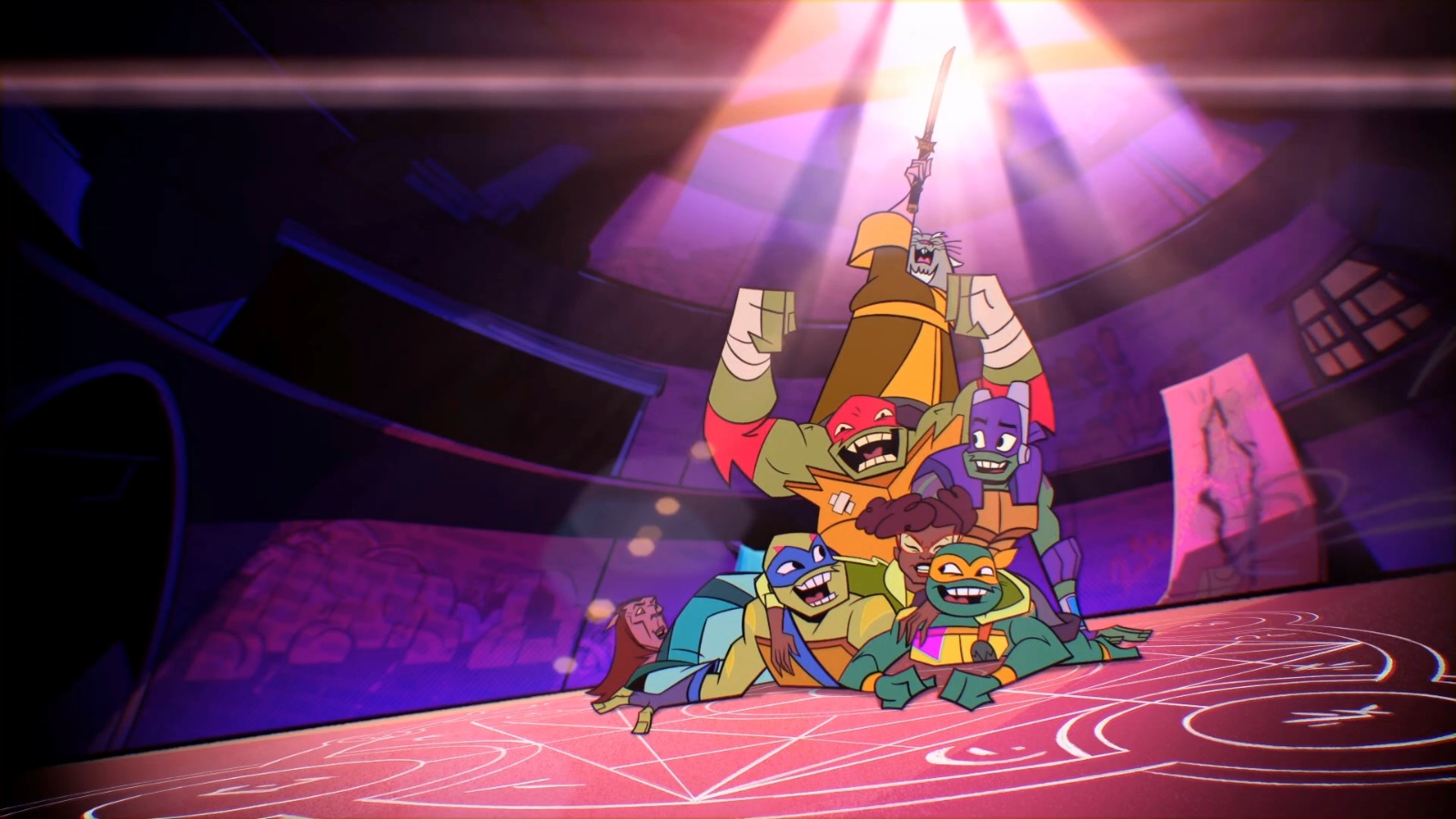 De retour dans le repaire, Splinter sortait de ses souvenirs, sans comprendre pourquoi il avait pleuré à chaudes larmes. Raphael annonçait à ses frères savoir comment vaincre Shredder. Il lui restait à présent à savoir comment accéder à la dimension où se trouvait l’arme. Draxum connaissait ce lieu et ouvrit un portail. Ils devaient former une chaîne et plonger dans cette dimension pour reprendre le sabre. S’exécutant, Splinter réussit à saisir l’arme. Revenant sur Terre, l’artefact se changea en femme. Avant de s’évanouir, la nouvelle venue semblait inquiète sur son apparition…