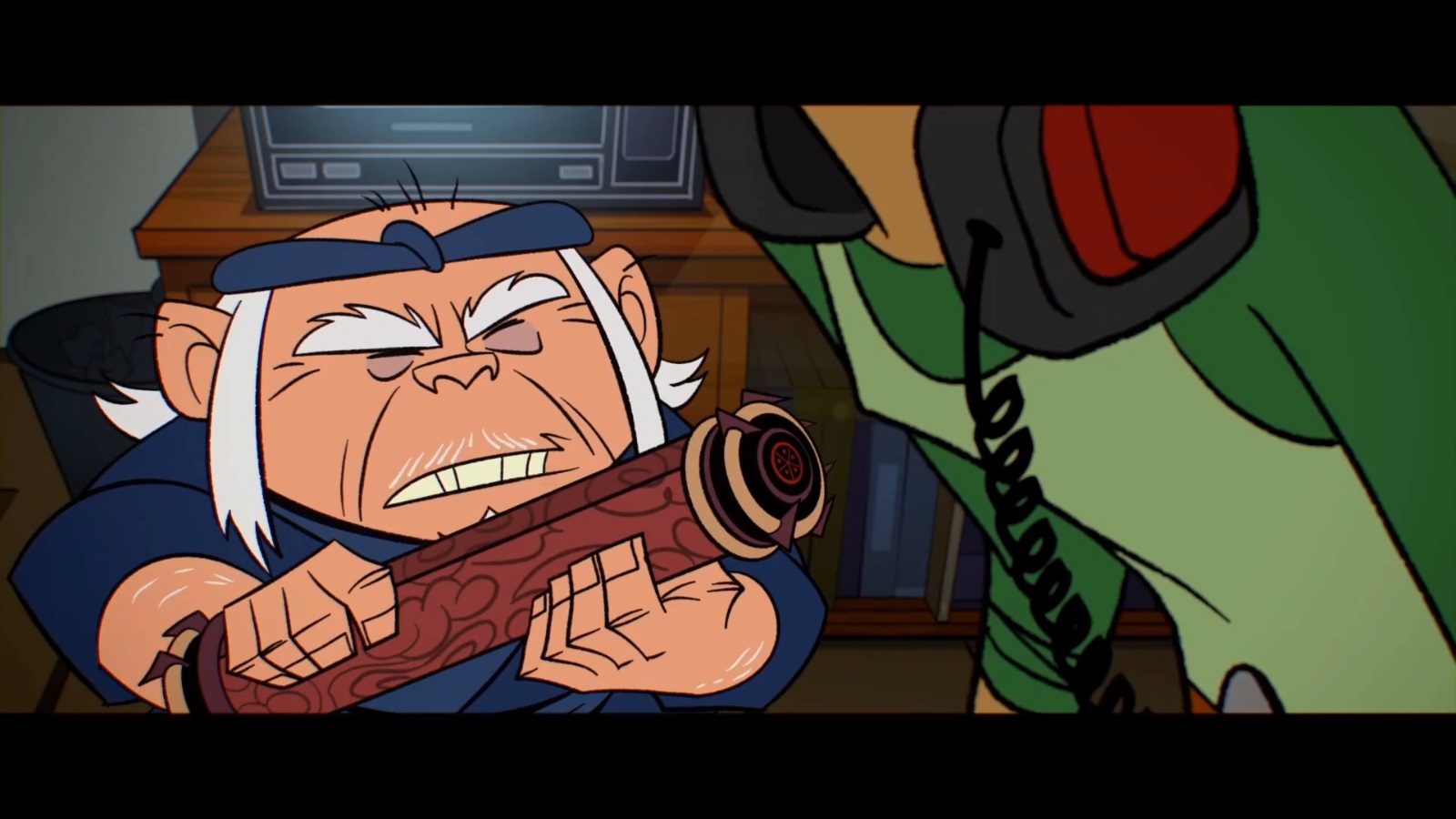 Les ninjas apparurent sur le plateau de tournage du film Hot Soup, de Lou Jitsu. Quelle joie de s’y trouver ! C’est alors qu’elles virent un vieil homme rabougri s’avancer vers la loge de la star du film, un rouleau sous le bras. Il s’agissait de Grandpa Sho, le grand-père d’Hamato Yoshi. Il demandait à son petit-fils de revenir dans le clan et d’apprendre, comme ses ancêtres, comment vaincre Shredder. Malheureusement, Yoshi ne voulait rien savoir. C’était la dernière fois qu’ils se parlaient.