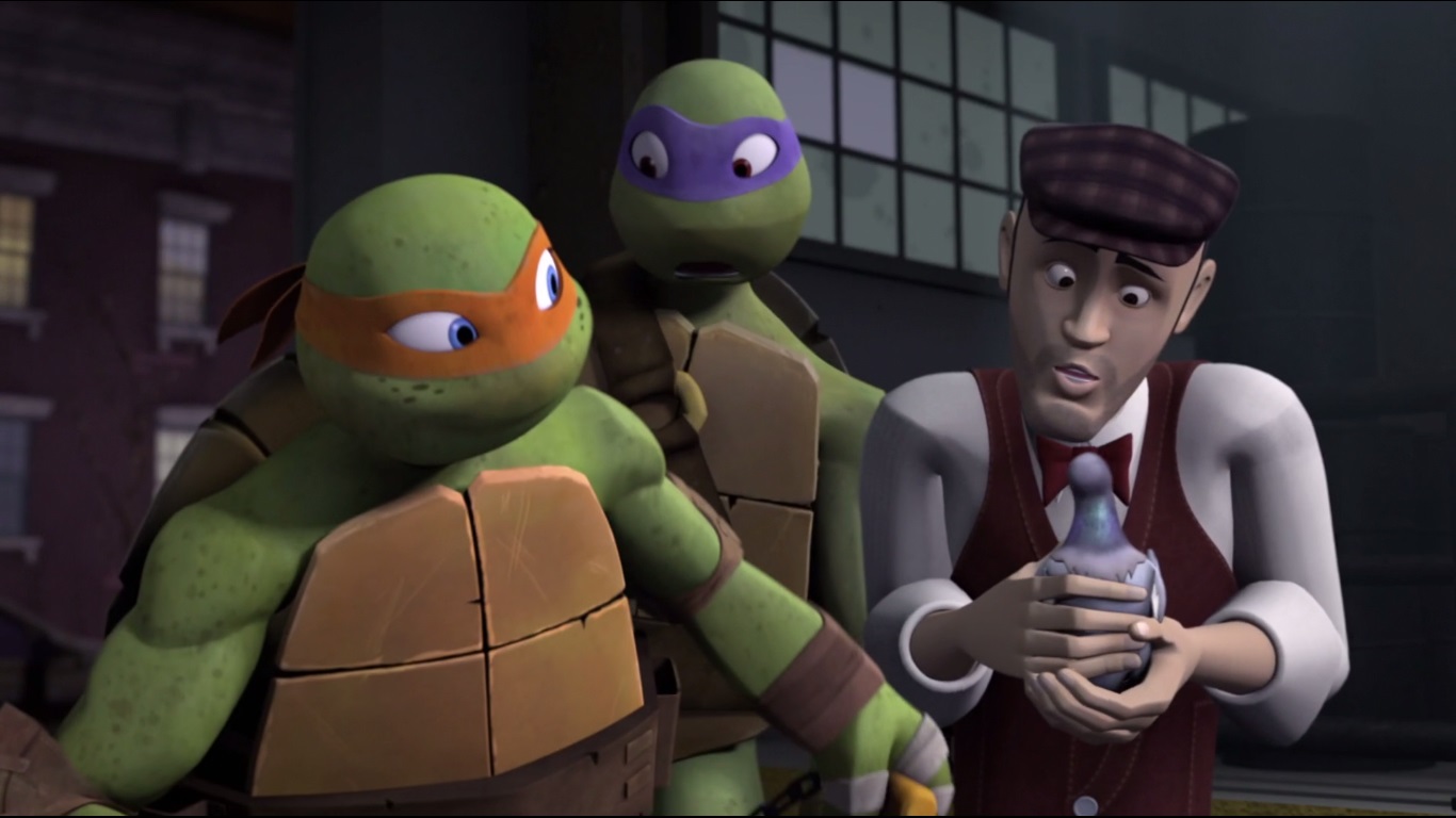 Les tortues étaient sur la piste des extraterrestres et s’apprêtaient à intervenir. Malheureusement, lorsqu’elles arrivèrent, il était déjà trop tard, l’homme roucoulait comme un pigeon, et l’oiseau parlait sans mal, tel un humain. Le combat contre les kraangs était engagé. Pendant la lutte, la machine était malmenée. L’homme et le pigeon se faisaient de nouveau frapper par le laser, recouvrant leurs corps respectifs. Cependant, Raphael était également touché par le rayon, à l’instar d’un kraang. Les deux personnages se retrouvaient jetés au sol. Les tortues battaient en retraite, rapatriant leur frère blessé.