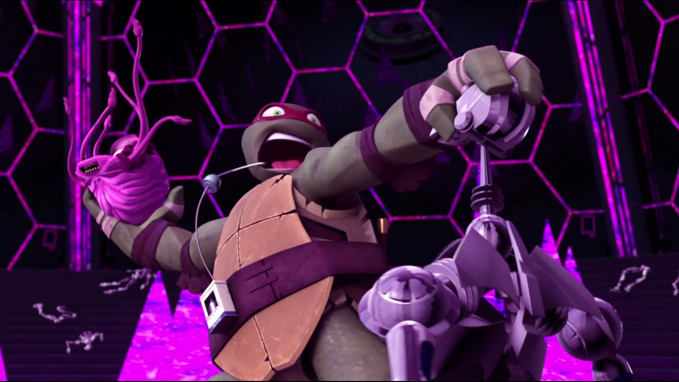 Michelangelo conduisait l’équipe vers une base kraang posée sur un astéroïde. Leonardo était plutôt jaloux de voir son rôle lui échapper en faveur du moins mature de la fratrie. L’entrée était gardée par Traag et Granitor, deux géants de pierre que Michelangelo semblait également bien connaître. Les deux créatures s’empressaient de les attaquer, mais n’avaient guère de chance face à un Michelangelo extrêmement habile dans son environnement. Une fois débarrassées des deux géants, les tortues entraient dans la base.