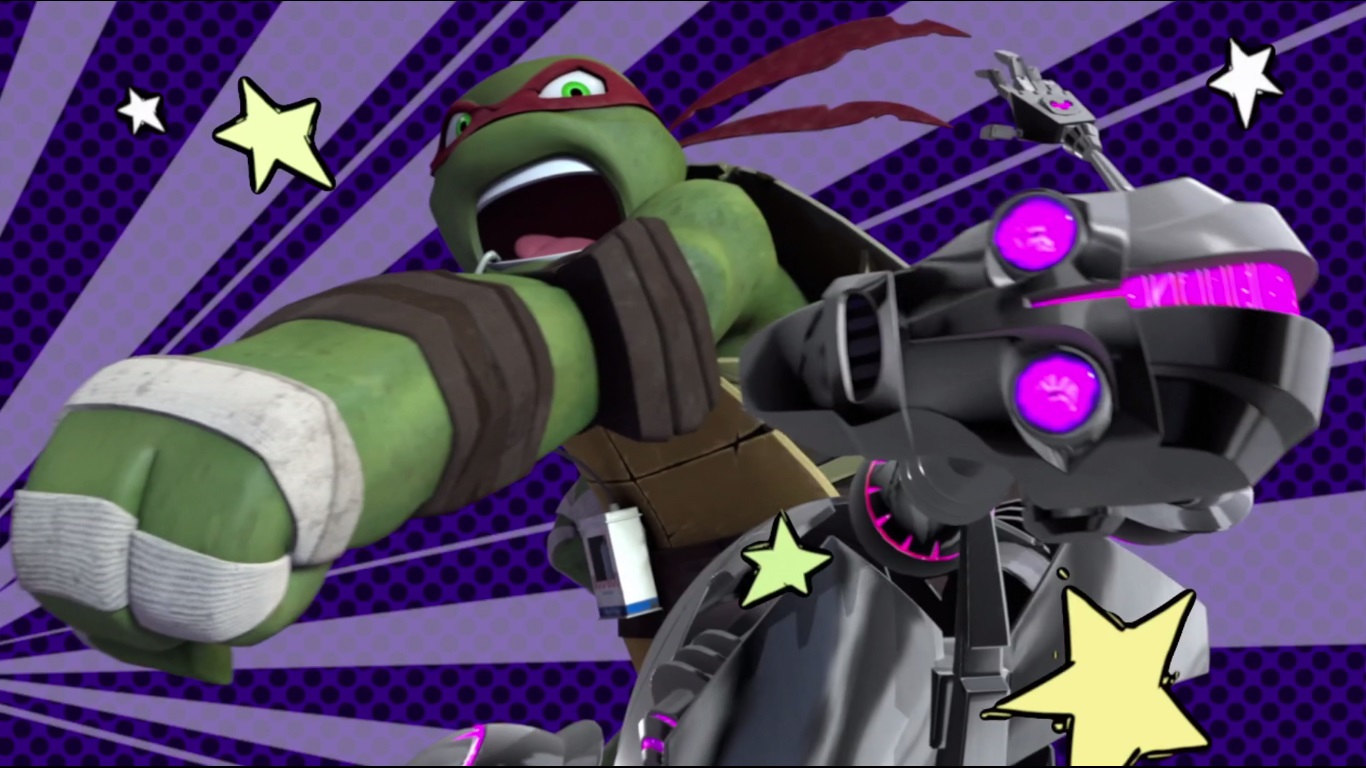 Dans les égouts, Leonardo, Michelangelo et Raphael se préparaient pour assister au dernier épisode des Super Robo Mecha Force Five, leur série préférée du moment. Michelangelo insérait la cassette, très excité. Il voulait à tous prix que Donatello assiste à la fin tant espérée. La quatrième tortue se trouvait dans son laboratoire, plongé dans la conception du Turtle Mech (Plan 10, S2 E21). Michelangelo lui apportait la télévision et le magnétoscope, oubliant que le tout était encore relié par un câble électrique. Un carnage…