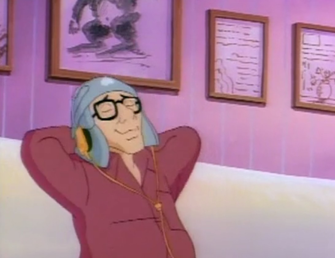 De retour à son appartement, Blodgett se lamentait sur son sort. Il avait posé le casque de Shredder sur sa tête et écoutait des cassettes de psychologie. La voix enregistrée lui suggérait de penser fort à ses désirs pour qu’ils se réalisent. Quel succès, à l’aide du cristal fixé sur le casque, le pauvre homme matérialisait une voiture dans son salon. Une nouvelle vie s’offrait à lui !