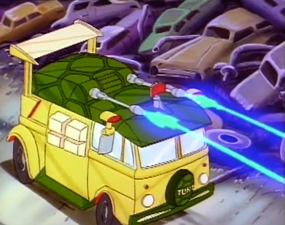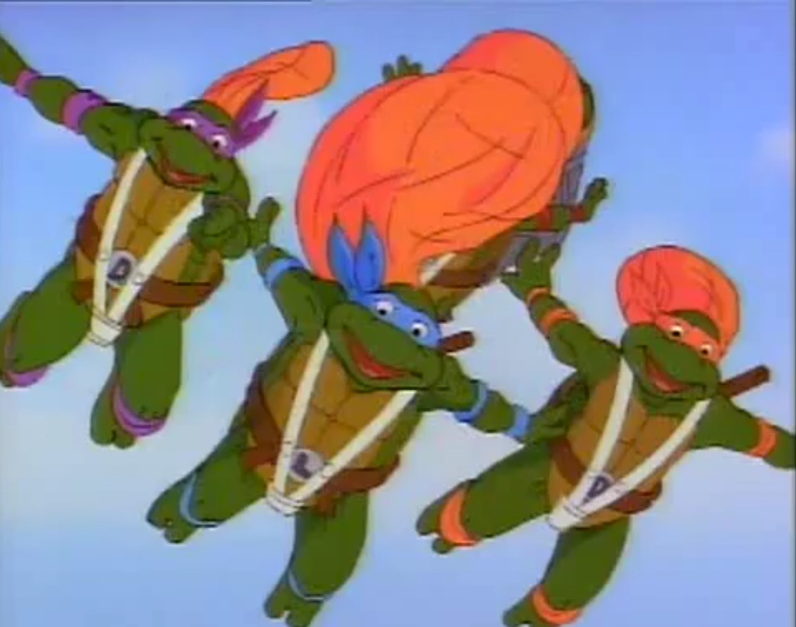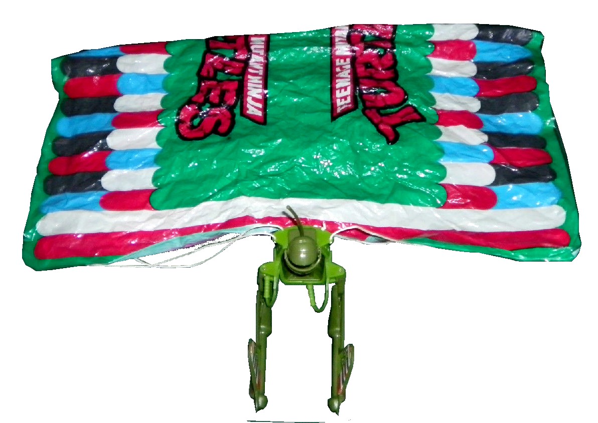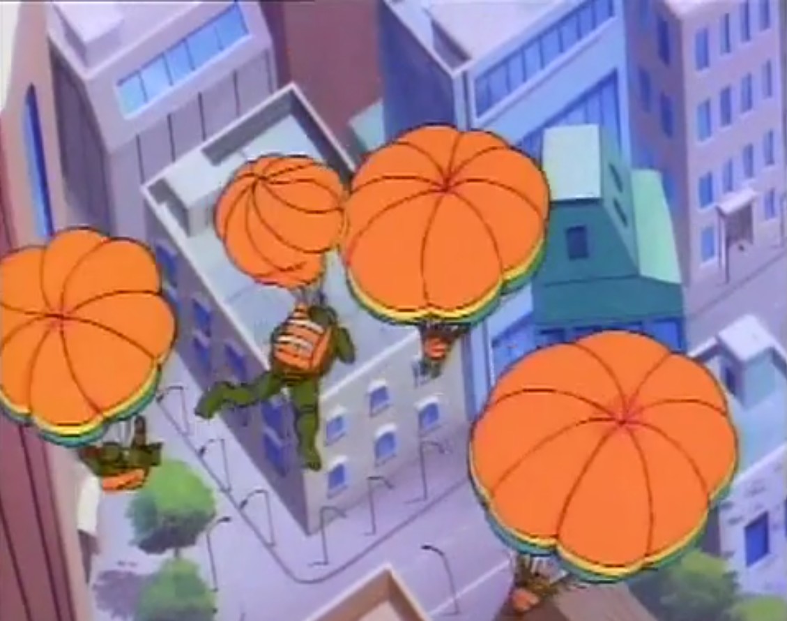 - Cet épisode fait la promotion des deux derniers « véhicules » sortis en 1988 pour la première wave, à savoir le Knucklehead et le Turtle trooper. La référence à ce dernier passe assez incognito, principalement en France, car seul le nom est conservé dans la version originale. Le design est totalement différent, ramené à un simple parachute.