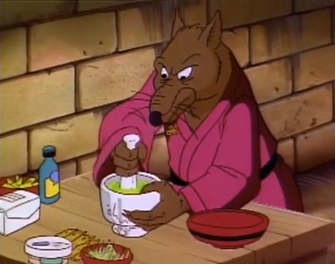 De retour au repaire, les tortues s’entretenaient avec leur maître, qui méditait. Elles étaient inquiètes, ne connaissant pas le plan de leur ennemi qui venait encore de leur filer entre les doigts. Le rongeur était d’avis qu’ils patientent jusqu’à la prochaine alerte, n’ayant pas grand-chose d’autre à faire.