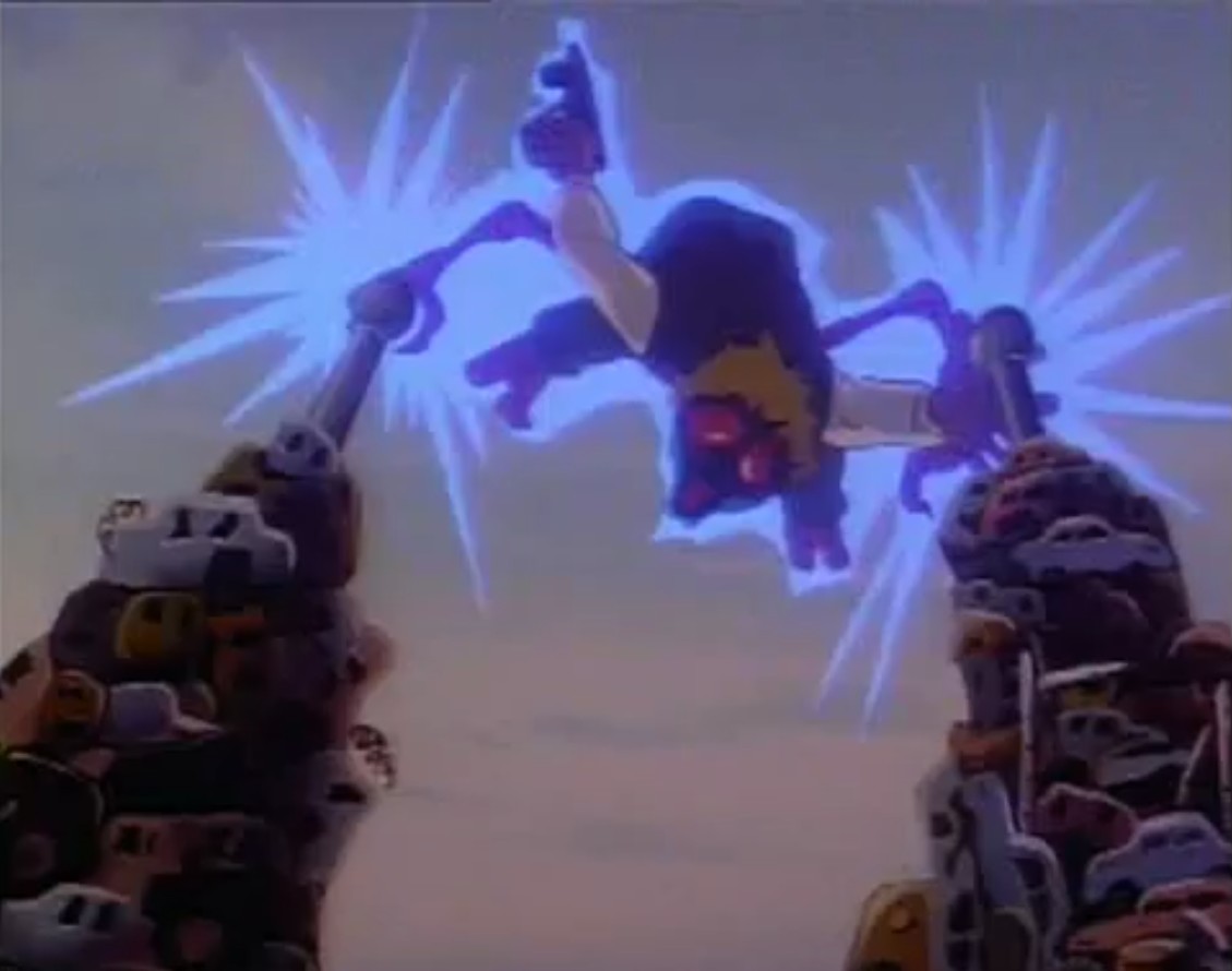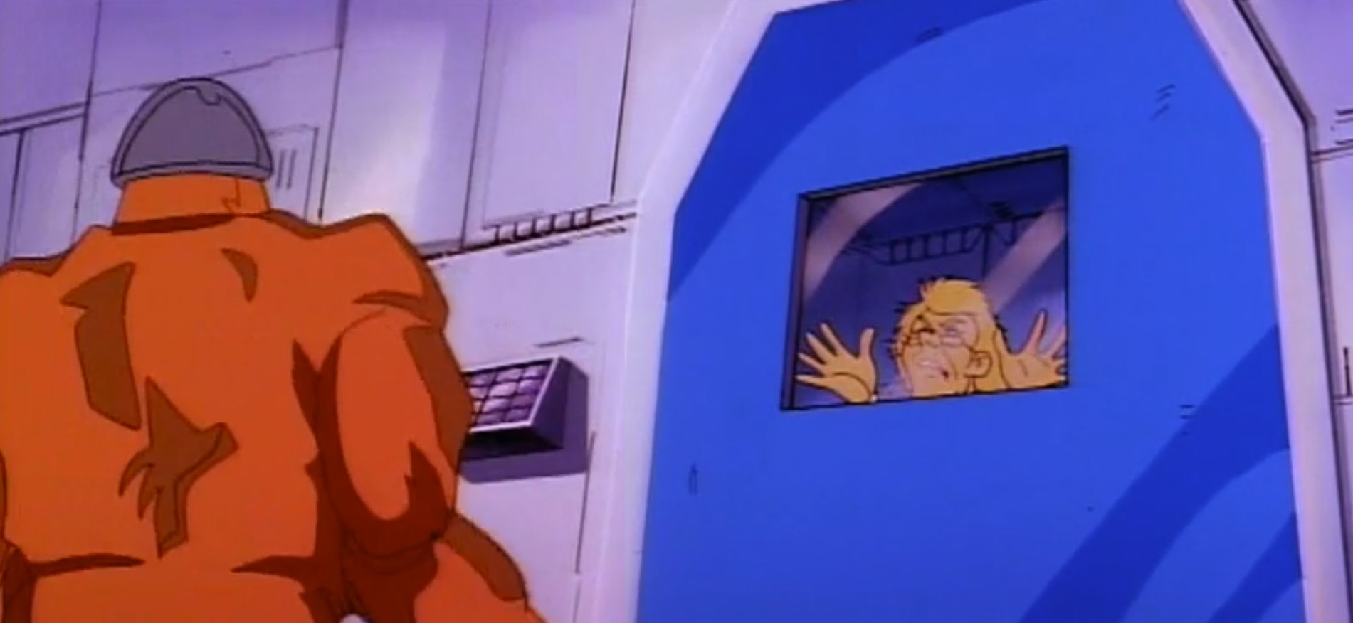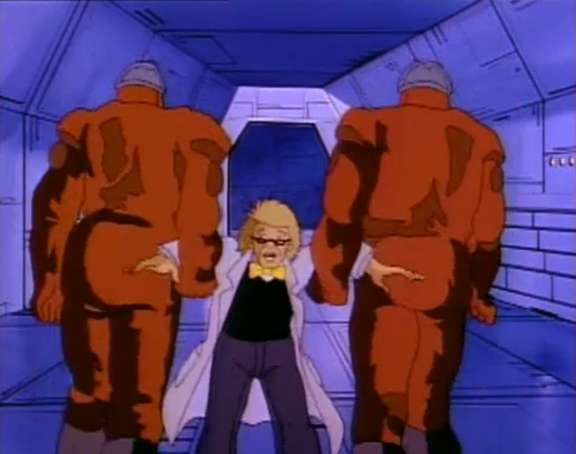Baxter était amené par les soldats de pierre dans la salle de désintégration. Krang n’avait pas l’intention de perdre son temps avec un pseudo-scientifique inutile. Jeté dans la pièce, des rayons s’apprêtaient à le faire disparaître pour de bon. Krang en profiterait pour faire une expérience. Mais il avait été suivi par une des mouches de la péniche, qui entrait à son tour dans la pièce. Au lieu d’être détruites, l’ADN des deux créatures avait fusionné pour n’en faire plus qu’une : une mouche mutante humanoïde ! La porte de la salle explosait. Stockman était bien décidé à prendre cette fois sa revanche sur ceux qui avaient voulus le tuer ou causer tant de torts. Saisissant un pistolet laser, il neutralisait les deux gardes de pierre avant d’ouvrir le portail pour retourner sur Terre.