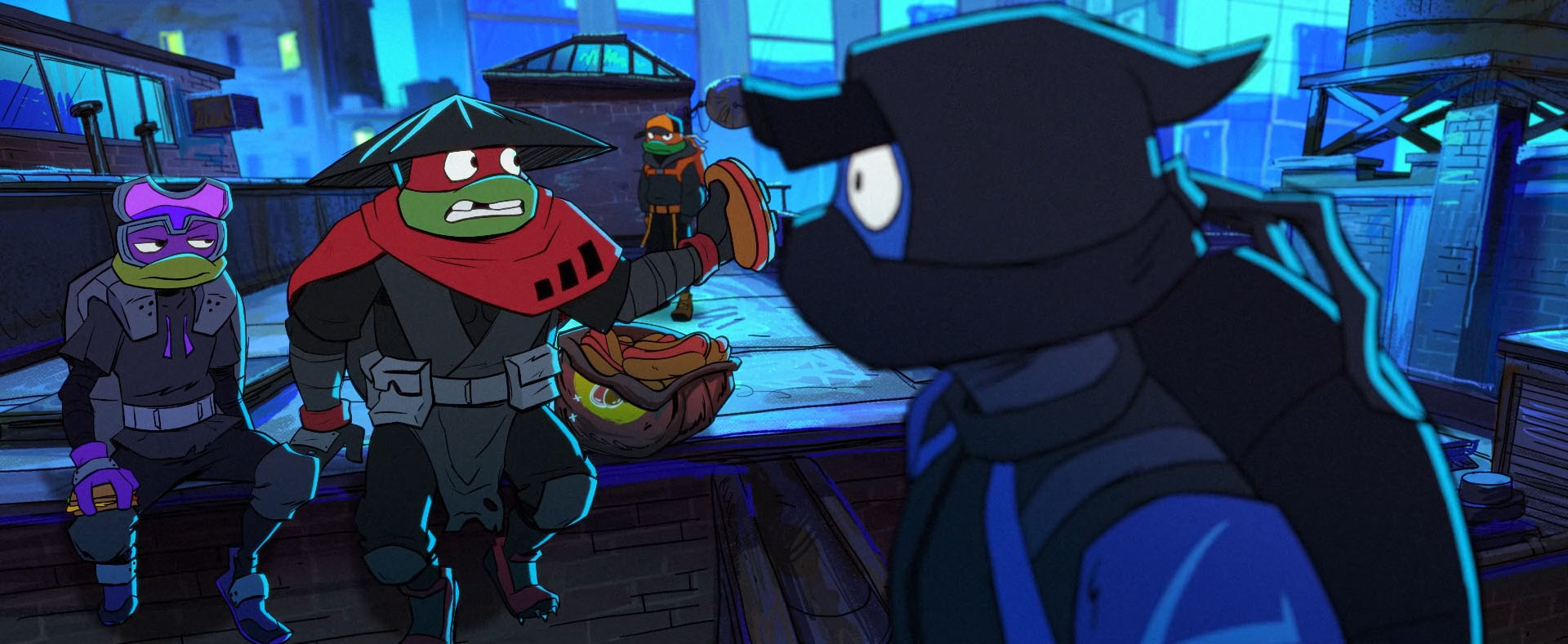 De retour au repaire, Leonardo s’empressait de raconter ce qui s’était passé à ses frères, qui s’arrachaient les écailles sur leurs devoirs. Mais à sa grande déception, son histoire ne surprenait pas ses frères. Il faut dire que des grands combats et des vies sauvées, ils connaissaient ça ces derniers temps, entre Superfly (Teenage years), les Mechazoids de Bishop, les Trois de l’East River (saison 1) ou encore les incidents de Staten Island (saison 2). Mais le jeune ninja estimait pouvoir en faire beaucoup plus et sauver les gens plus régulièrement. En réalité, il voulait devenir un super-héros. Ses frères le ramenaient à la réalité, être justicier était illégal et ils risqueraient gros auprès du lycée et de leur père.
