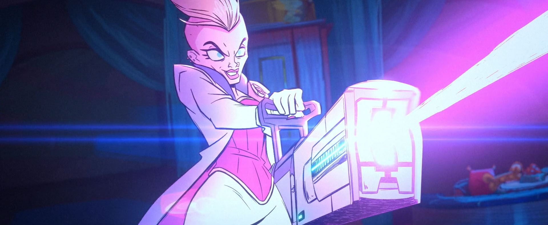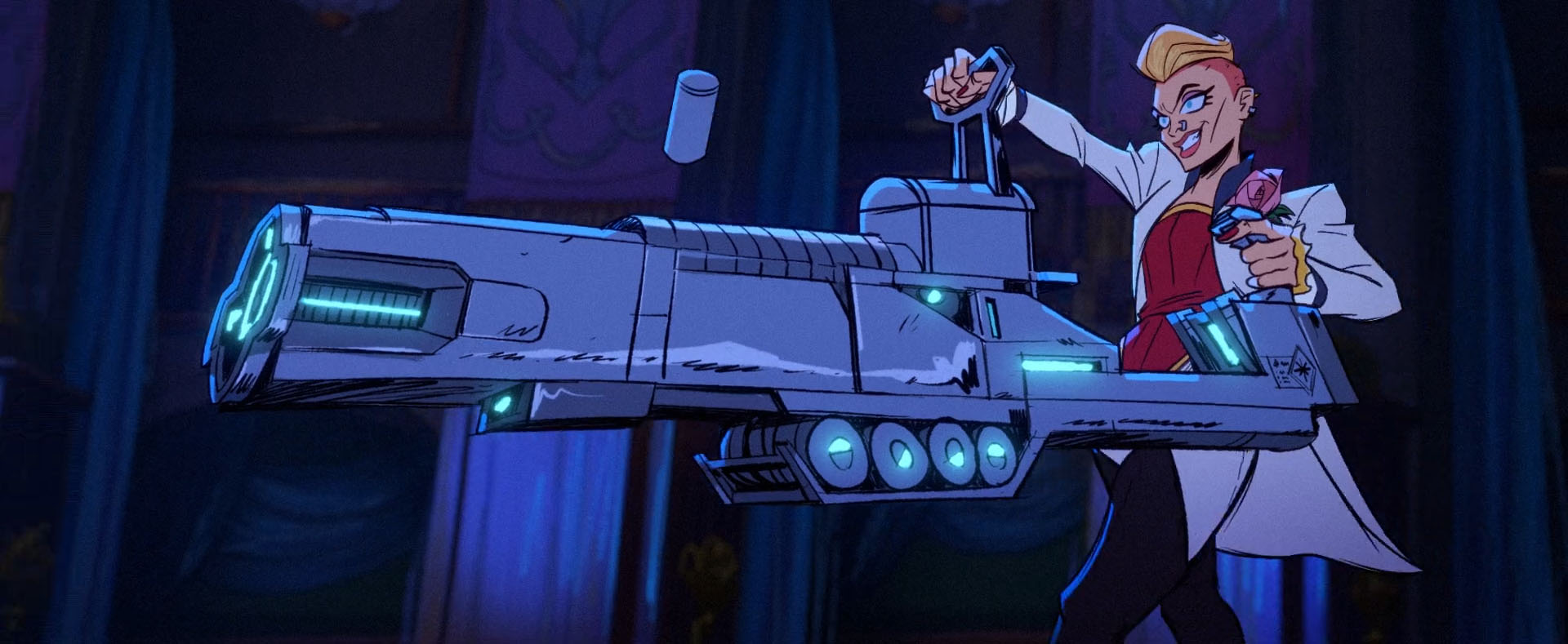 La Fleur et ses sbires entraient dans l’hôtel canin et se présentaient à l’accueil. Le réceptionniste neutralisé, tous les chiens étaient mis en cage et emmenés. Soudain, un kunai volait pour éteindre la lumière. Les hommes de mains de la curieuse dame étaient vaincus et les chiens libérés. Leonardo faisait face à La Fleur, qui dégainait une impressionnante arme laser. Chaque tir détruisait une partie du bâtiment. Le Ninja de la nuit avait beau esquiver chaque attaque, son adversaire était très dangereux. Michelangelo était mis sur le carreau, son frère volait à sa rescousse. Très vite, tout le bâtiment était en proie aux flammes, les tortues devaient quitter les lieux. Leonardo voulait sauver le réceptionniste, encore dans les vapes. Il était balayé par son adversaire, qui le jetait au sol. Mise en joue, la tortue poignardait l’arme de La Fleur avec un kunai et déviait le tir qui lui aurait été fatal. Le lustre du hall d’entrée tombait sur le mutant, qui laissait la voleuse filer.