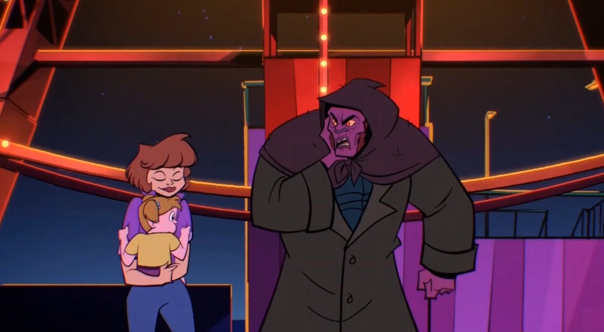 L’enthousiasme de Michelangelo devenait bientôt du désespoir. Rien de ce que Draxum faisait n’allait dans son sens d’amélioration. C’est alors que les deux chasseurs de prime apparurent pour emmener le baron au Conseil yokais. L’alchimiste déchu essayait de leur échapper, mais rien n’y faisait. Michelangelo parvint à convaincre son frère que Draxum méritait une seconde chance. Les deux tortues se lançaient à l’attaque. Dans le combat, Raphael dévia un tir de l’un des chasseurs, qui termina dans la grande roue du parc. Le yokai était surpris de voir ses anciens ennemis venir à son aide. Il décida d’en faire de même, et partit sauver les humains, qu’il détestait tant, dans la grande roue.