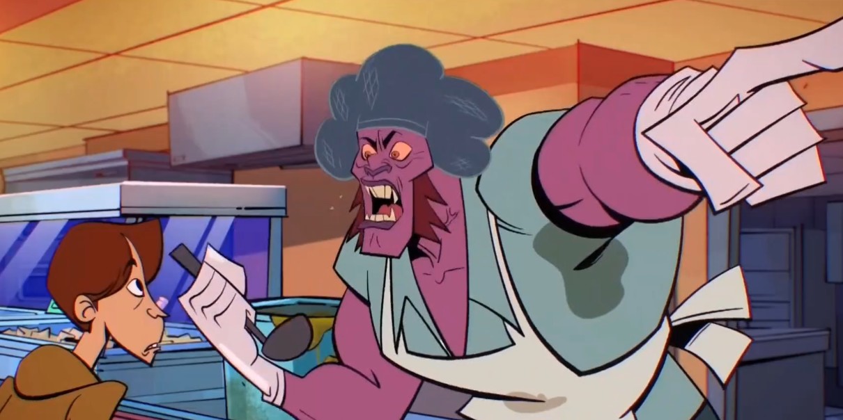 Draxum avait besoin d’un travail dans ses cordes. Il détestait les humains, tout particulièrement les enfants. Quoi de mieux que de travailler dans le lycée d’April ? Le yokai fut placé dans la cantine, au service des adolescents. Un pas de travers, et il les remettait à leur place. Il semblait se plaire dans ce nouveau travail !