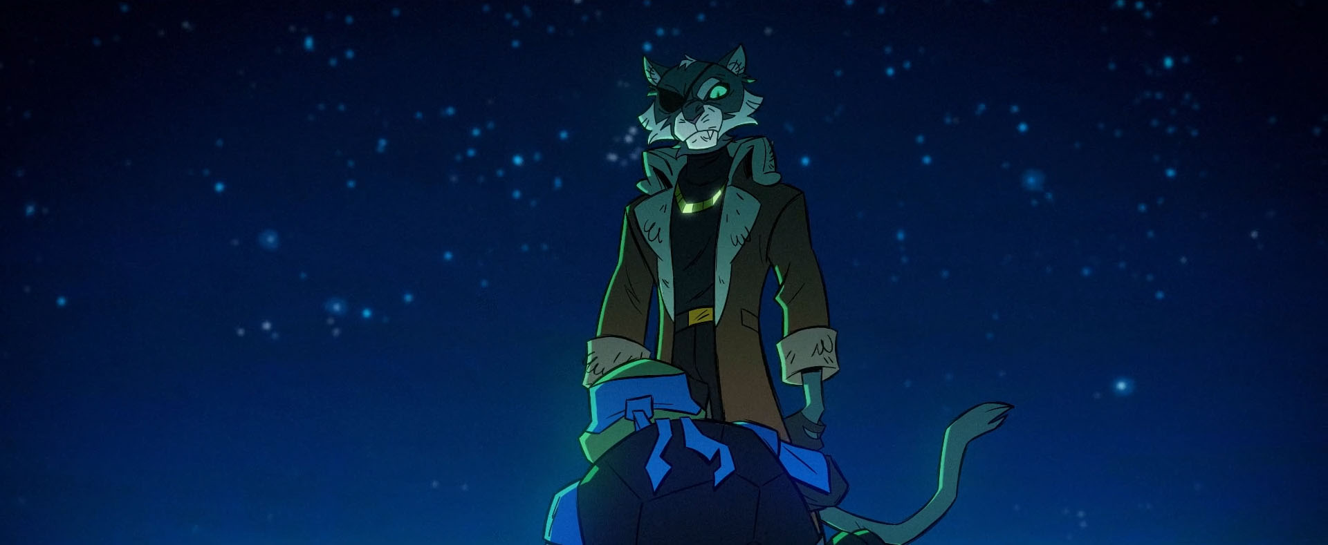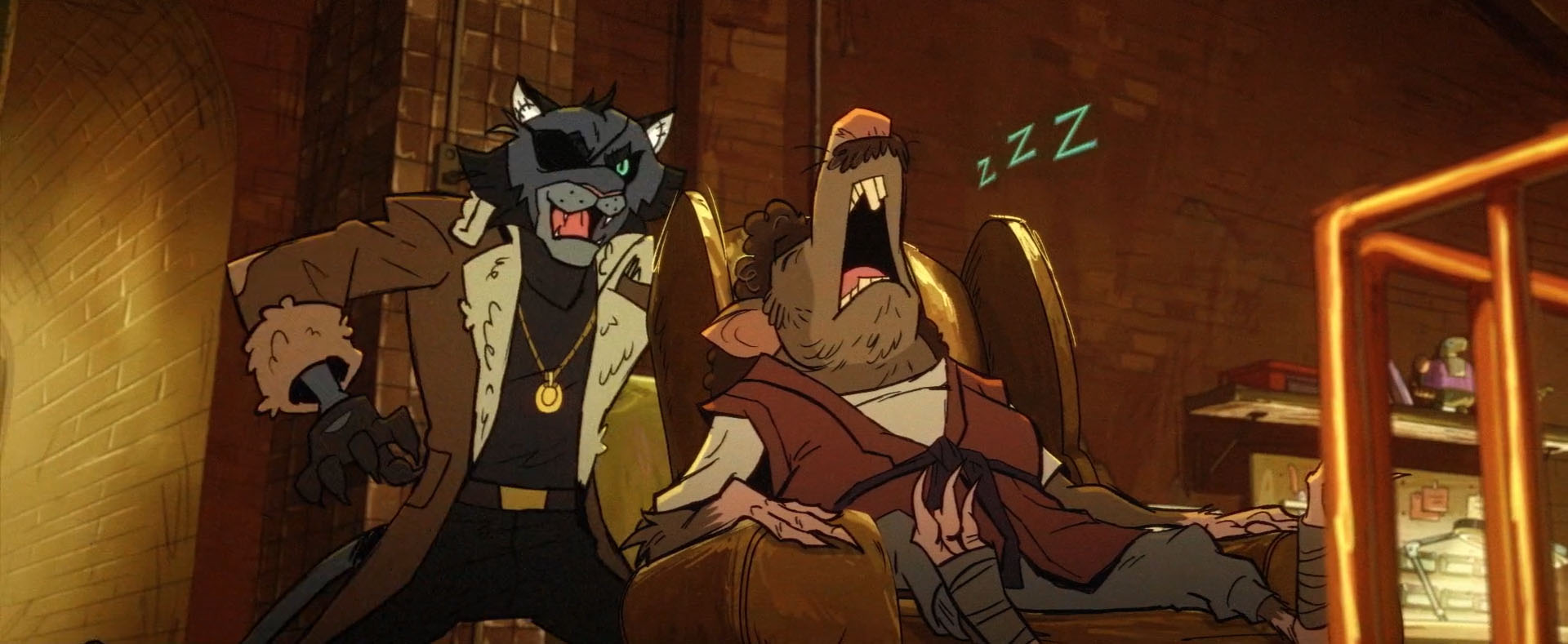 Quatorze ans plus tôt, le rongeur devenu mutant avait effectivement reçu la visite de Scratch dans le repaire. Pénétrant dans le foyer, griffes prêtes au combat, le félin avait réveillé les tortues, qui se chamaillaient. Il les remettait dans leur berceau avant de se diriger vers Splinter pour l’achever. Le rat s’était profondément assoupi en lisant le journal. Malgré la cohue, impossible de réveiller le rat. Pire encore, les quatre reptiles mettaient l’intrus en déroute par leurs sottises.
