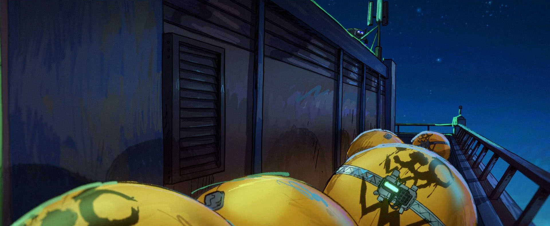 Une fois devant l’immeuble, les frères allaient escalader la façade pour ne pas se faire repérer. Leurs ennemis s’impatientaient, mais Scratch se montrerait très patient. Il s’attendait au pire, à une attaque furtive de la part de redoutables ninjas entraînés dans l’ombre. Soudain, ils entendaient du bruit. Les tortues arrivaient, essoufflées, exténuées et Donatello vomissait même sa dernière pizza (suivit de près par les autres frères). Voilà des heures que Scratch attendait pour prendre sa revanche et avait la détestable surprise de se rendre compte que les tortues ne se souvenaient pas de lui après toutes ces années de combat. Il était furieux et les considérait comme leur nemesis. Scumbug avait été placée au sommet d’une antenne, ligotée et accompagnées d’une bombe. Le chat la faisait exploser, précipitant le cafard dans le vide. La structure de métal n’était retenue plus que par un seul pilier.
