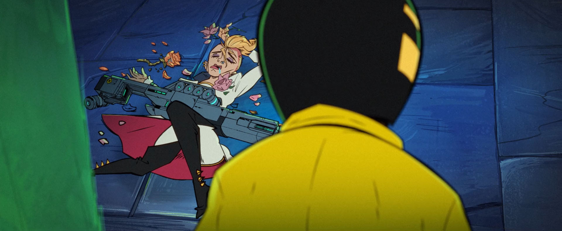 Dans le flashback, un poster présente un homme musclé et taillé pour le combat du nom de Stone. Il s’agit d’un clin d’œil à la star de catch et du cinéma The rock.