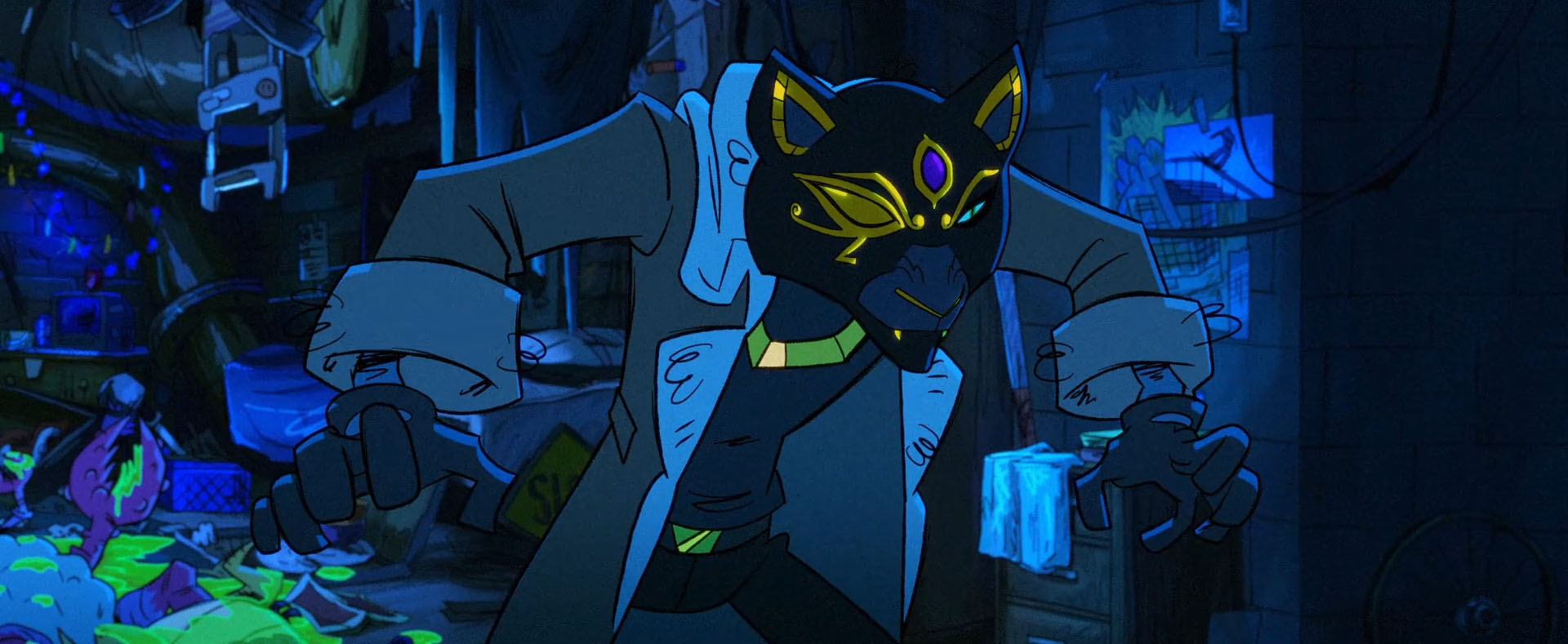 Scratch était entré dans le repaire, faisant grincer ses griffes sur les murs bien décidé à prendre sa revanche sur son vieil ennemi. Il était accompagné de l’une des puces. Soudain, le chat tombait sur Scumbug, qui venait de se faire un masque de beauté. Toujours aussi stupide, l’insecte ne sentait pas que l’intrus était un ennemi. Le chat regardait alentour et voyait des photos de Splinter avec le cafard ; il comprenait son lien. Ils pouvaient la capturer. Cette dernière comprit enfin le piège et sauta dans tous les sens en vomissant. Soudain, la voix des tortues se faisait entendre à l’extérieur. Ses adversaires approchaient, alors sans perdre de temps, Scratch partait se cacher dans une tente avec Scumbug et la puce.
