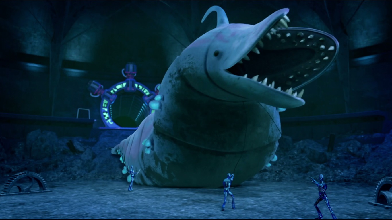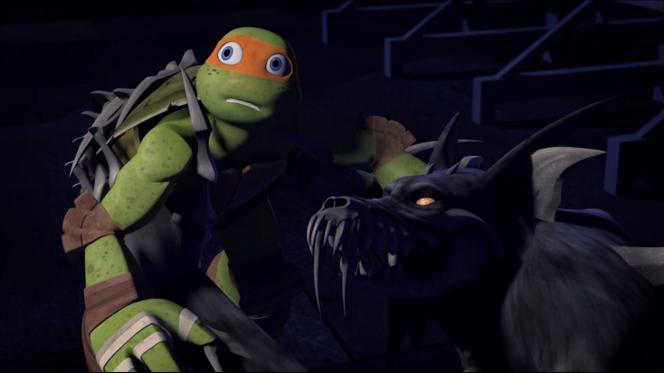Avec ce nouveau plan en main, Donatello attirait la créature en faisant raisonner les rails de métro de la ligne où il se trouvait. Le ver arrivait à toute vitesse. Pour le neutraliser, la tortue lui envoya des salières à la figure. Cela ne lui faisait pas le moindre effet… April et lui créaient un nuage de sel, bien plus efficace. La créature tombait dans les vapes et vomit par la même occasion Casey. Mais Donatello assistait à un spectacle très inquiétant. Un kraathatrogon adulte était sur le point d’arriver par le portail des kraangs. Ils n’avaient plus de temps à perdre. La tortue essayait de refermer le portail. April de son côté, domptait la créature géante par les antennes, comme leur avait conseillé Kurtzman. C’était une réussite.