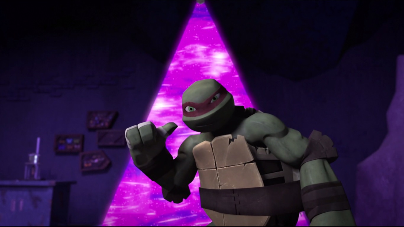 - L’inversion de polarité de Donatello sur le passage aurait dû permettre à tout ce qui avait été aspiré dans le tunnel de se retrouver dans l’univers du dessin animé de 1987. Or seul le Kraathatrogon s’y retrouve. La magie du scénario !