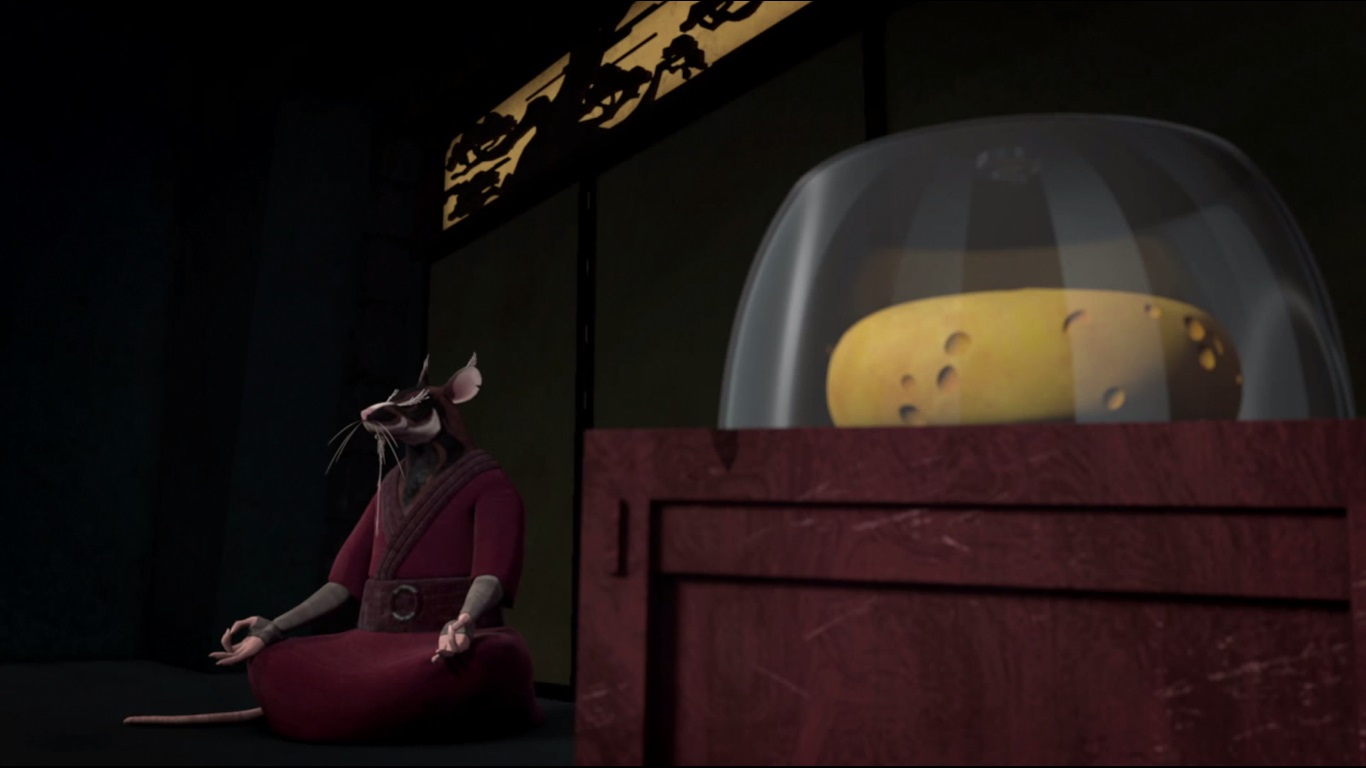 Le rat avait été déposé dans le hall principal. Shredder s’apprêtait à tuer le rongeur lorsque sa fille retint son coup. Elle se demandait s’il était honorable d’exécuter son rival alors qu’il était enchaîné et sans défense. Shredder offrait ainsi un dernier combat à son vieil ami Yoshi. Ce dernier demandait à Karai pourquoi l’avoir épargné, appuyant sur son son inconscient et les doutes qui la rongeaient depuis quelques temps. Shredder savait que les tortues ne sauraient tarder, voulant libérer leur père coûte que coûte. Le rat était laissé seul au centre du hall comme appât.